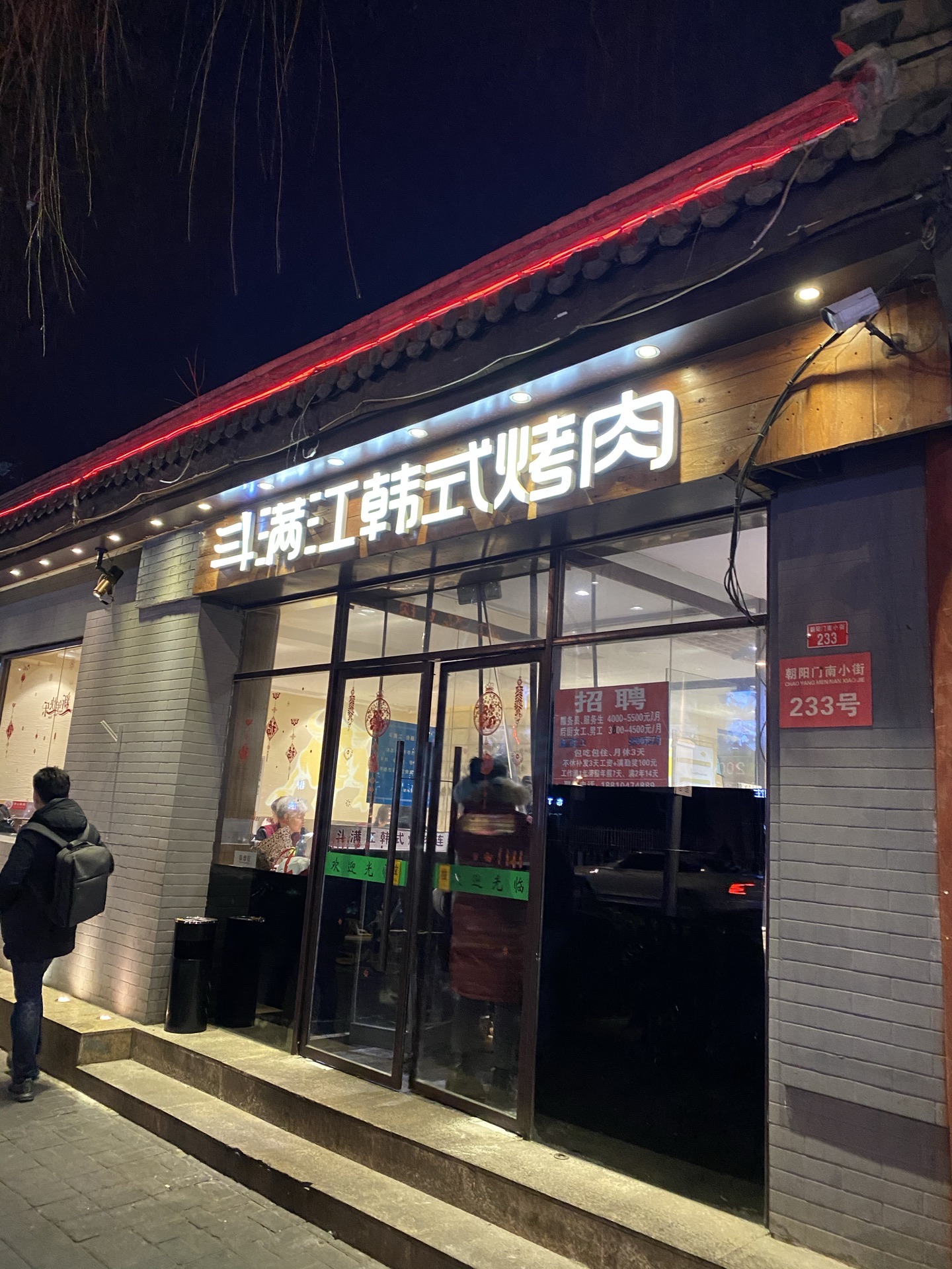 斗满江韩式烤肉(朝阳门)店位于北京市朝阳门内小街,是一家有着十多年历史的餐厅。餐厅以韩式炭火烤肉为特色,味道不错,价格也很合理!
