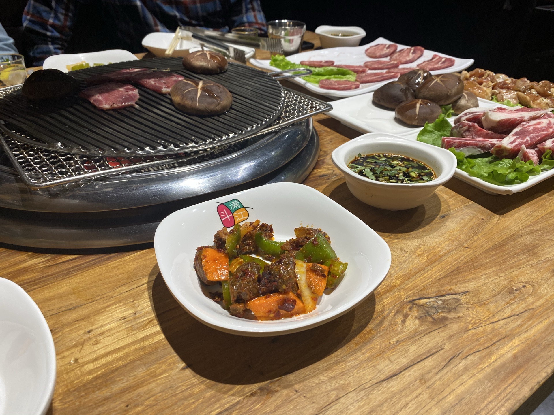 餐厅以韩式炭火烤肉为特色,味道不错,价格也很合理