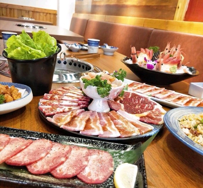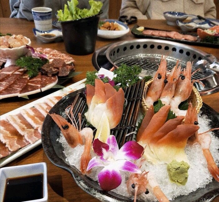 谷肆烤肉居酒屋 地址:良港东路161号(人寿对面) 门口的小院子结合了和风的装修很吸睛 主打的是碳火烤肉并且以进口牛肉为主烤盘的火候不是很好掌控,服务员说空闲的时候可以帮顾客烤。但是碳火很好地保持了肉质的原汁原味,不需要刷油,牛肉的肉质还是比较鲜美的。搭配上自制的烤肉酱和调料粉,烤肉酱是偏甜口的,调料粉很香,搭配烤肉激进了香味的迸发 刺身拼盘就是吃个新鲜,甜虾甜味很天然,北极贝很爽脆。这家的手工芥未完全没有辣味,喜欢芥末又不能吃辣的朋友可以尝试。鸡软骨分量有点少