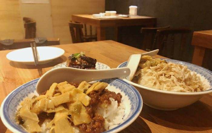 台湾卤肉饭作为台湾的名小吃,不容错过。菜是挺好吃的,就是分量太少是一家专做台湾卤肉饭的小店,深受老饕们喜爱。台湾卤肉饭作为台湾的名小吃,不容错过。菜是挺好吃的,就是分量太少。装菜的盘子就是装凉菜盘子的大小,只能尝个味道。