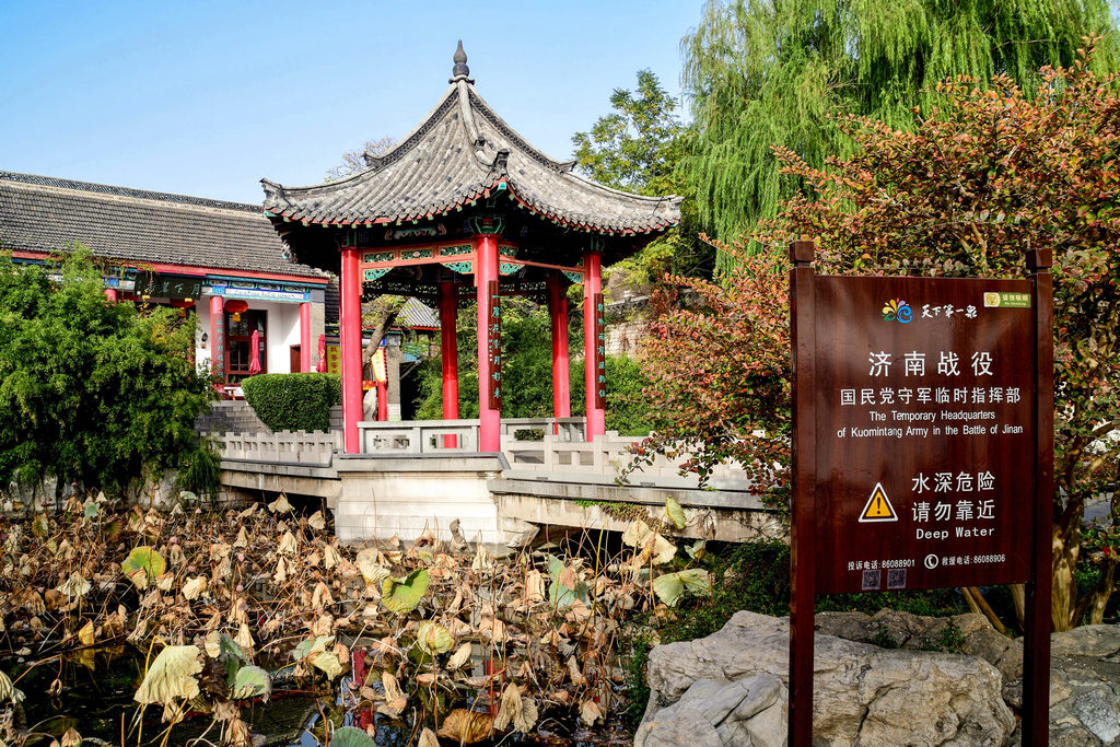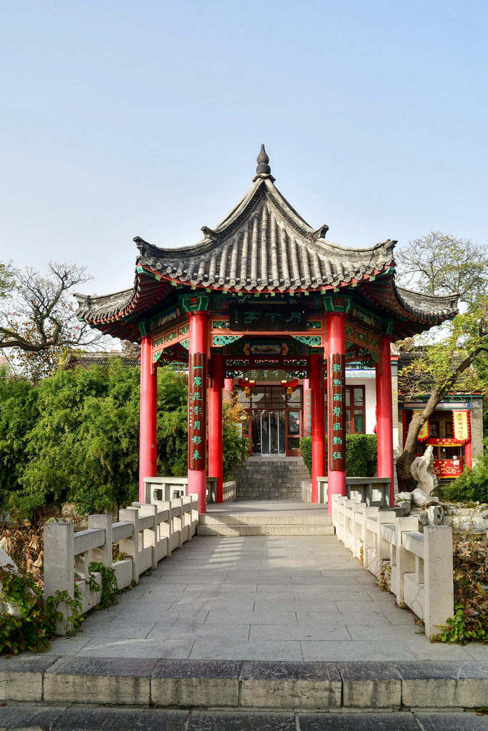 月下亭 在大明 湖北 岸, 北极 阁西侧。亭子立在水池中央,建于1937年,形为六角尖顶,白柱青瓦,饰以彩绘,小巧玲珑,典雅别致。月下亭南北,各有白石小桥, 南通 湖岸,北通大厅。大厅与月下亭同时建成,面阔三间,于数级台阶之上,楼上南侧设有阳台,可观览明湖景色,厅下有地下室。月下亭是赏月的最佳去处,只要是有月的夜晚,不管是圆月还是弦月,月下亭都像披上了银白的轻纱。