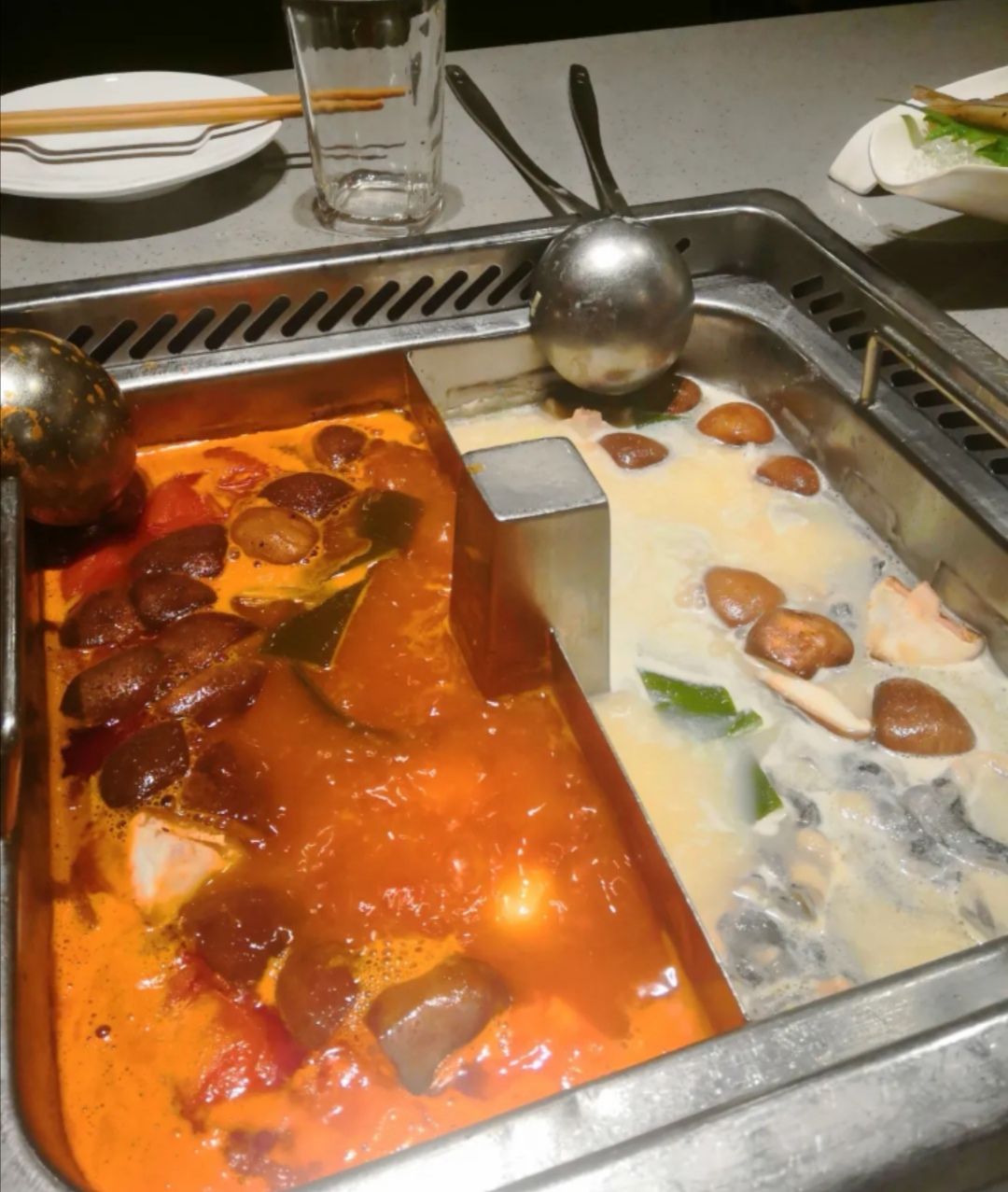 网友2020-01-17点了很多毛肚,虾滑,牛键肉,羊肉卷等,好吃新鲜锅底选的番茄和猪肚鸡的拼锅,推荐猪肚鸡,汤可以喝,味道非常鲜美,有很多猪肚和乌鸡卷,很养生。点了很多毛肚,虾滑,牛键肉,羊肉卷等,好吃新鲜。