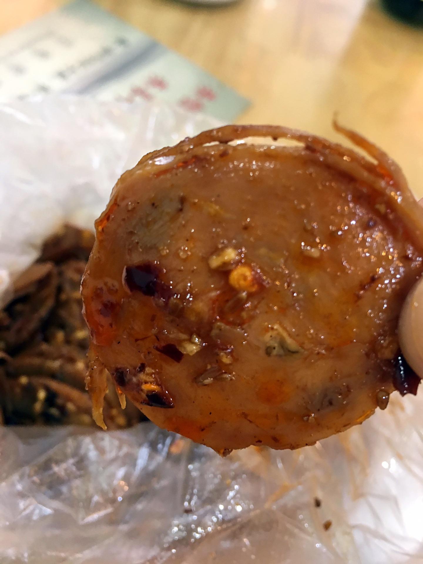网友2020-01-18是非常好的下酒菜,一杯白酒下肚,夹几片香辣的捆鸡切好的捆鸡有辣和不辣两种口味的。吃起来有一点嚼劲,是各种香料混合的味道,里面孜然的味道尤其突出。是非常好的下酒菜,一杯白酒下肚,夹几片香辣的捆鸡。