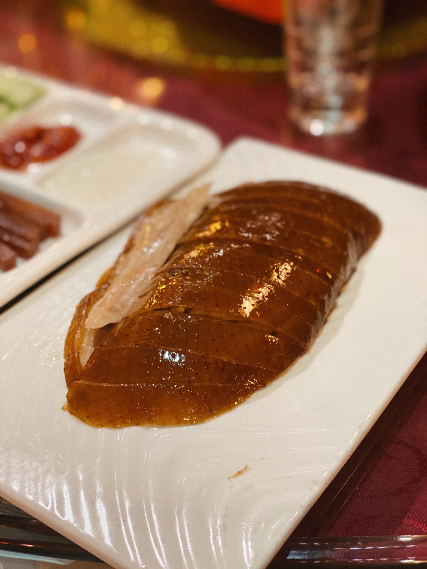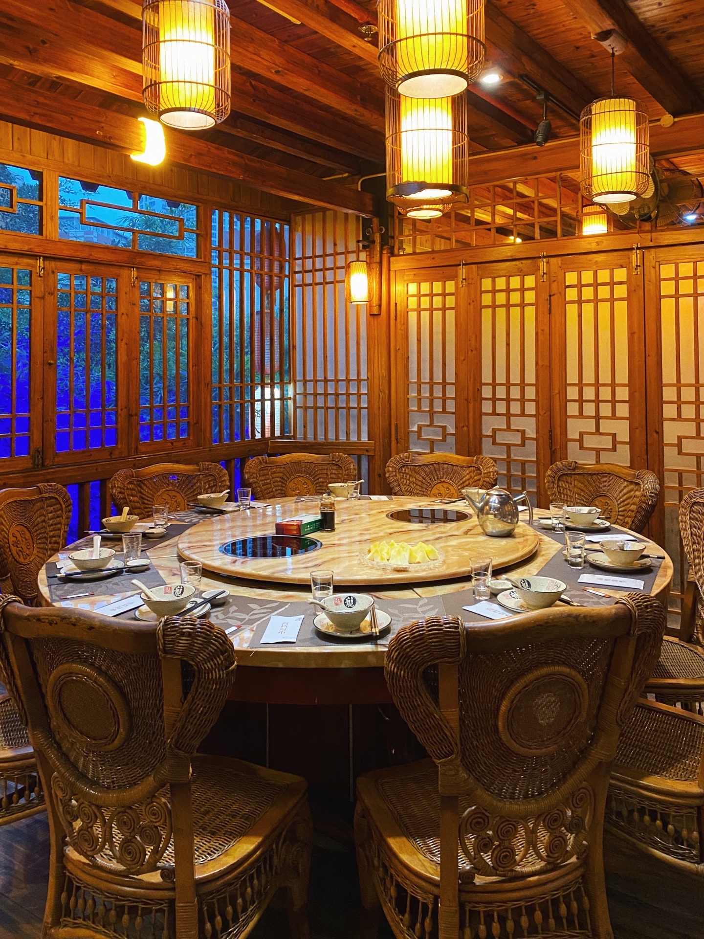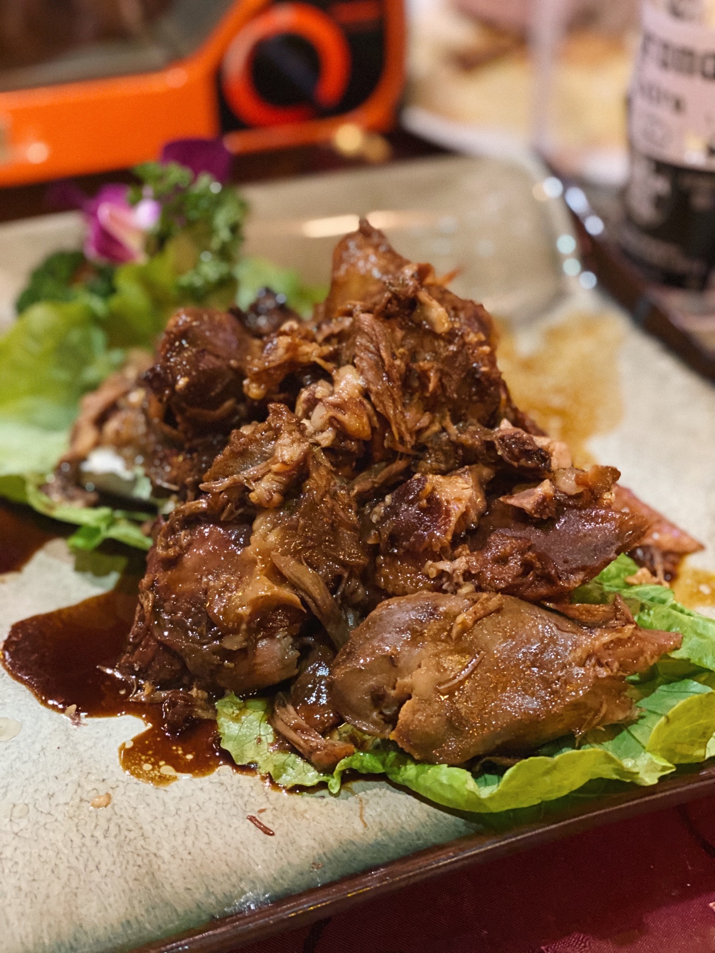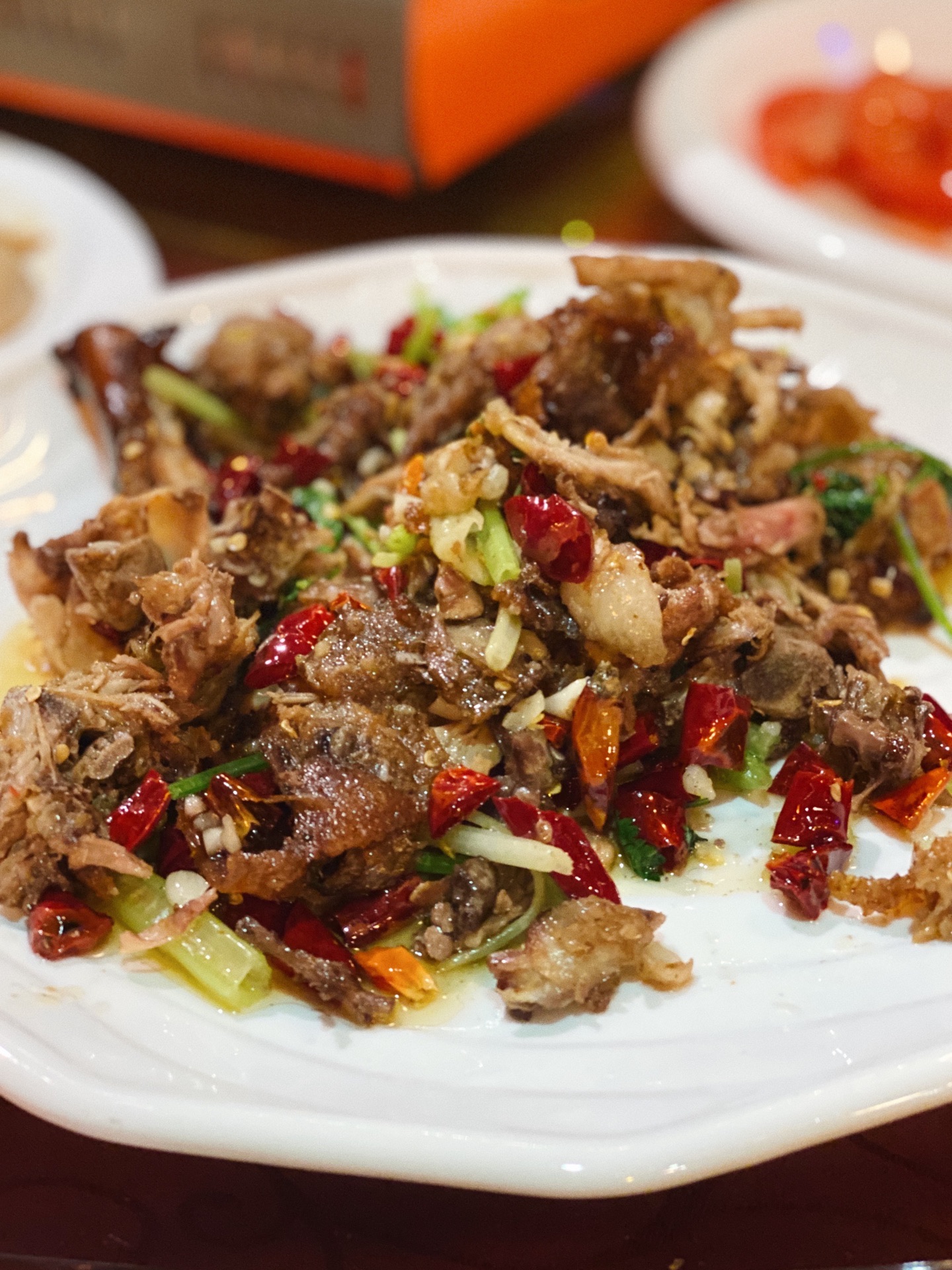 部门聚餐来的 其实已经是第二次来 第一次坐的蒙古包 当时不管味道还是服务还是环境都觉得满意 可以给五星的那种 但这次 可能因为年底尾牙的原因 座位也比较紧缺 坐的地方冷风吹得都要老寒腿 菜品也都较之前退步 有些菜明明第一次很惊艳 这次就只有感觉尚可了 先从一鱼多吃说起 店内主打千岛湖有机鱼 楼下小泳池养了好多鱼 超大条 可以鱼头煮汤 鱼身水煮 鱼尾炭烤 味道是都不错 有保持水准 特别鱼汤 又鲜又热乎 羊腿则觉得腻 因为不是烤的 肉又多 真的吃一块就吃不下第二块 北京烤鸭之前吃觉得超棒 但这次也是感觉一般 不过烤鸭架还能爆炒 又算一菜二吃啦 酱猪肉觉得卤料包的味道过重了 ️ 这次很幸运 车能停在店门前 不然江头路边市政停车位2小时就20+ 或者可以停开明电影院 每小时5元