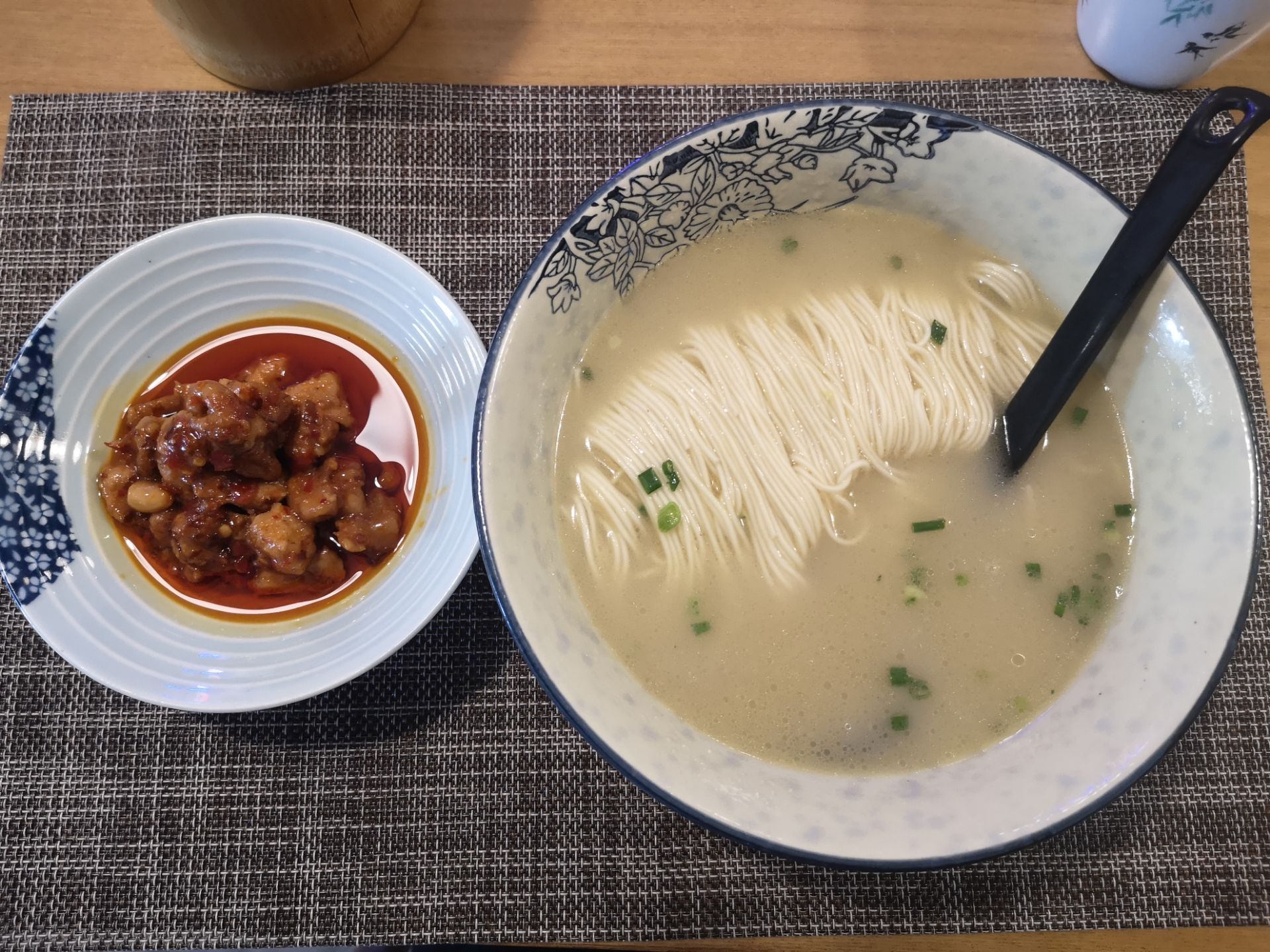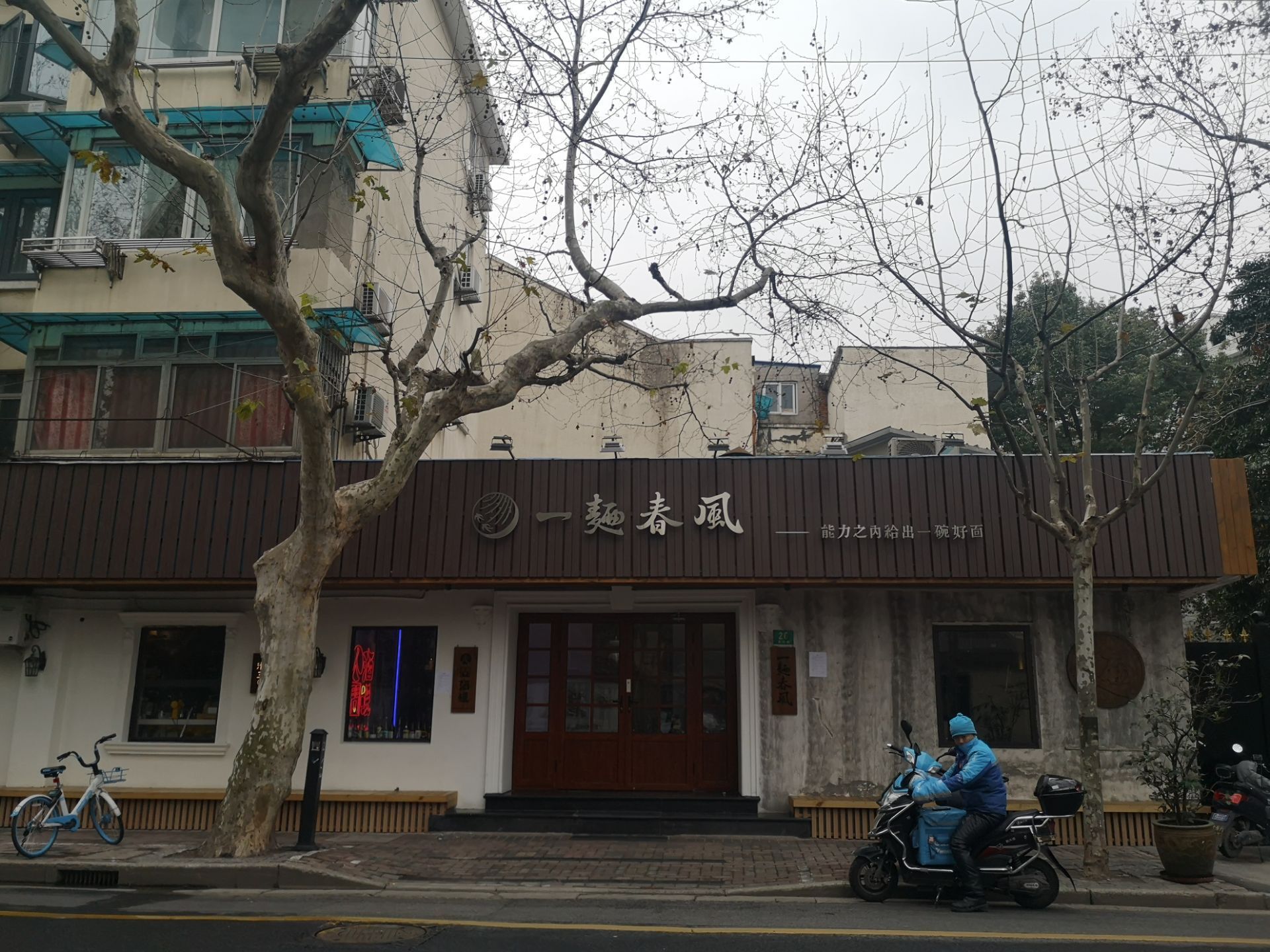 来上图的时候碰巧是中午,就会想到出来后沿着淮海路走过高安路,到吴兴路的一面春风吃碗面。 外面是萧瑟的冷风,春风,只能在食客的心里。 还是习惯要春风辣肉面,配骨头汤。 这次没有将辣肉一股脑儿倒进面里,一筷子一筷子夹,品尝那辣种带甜的味道。