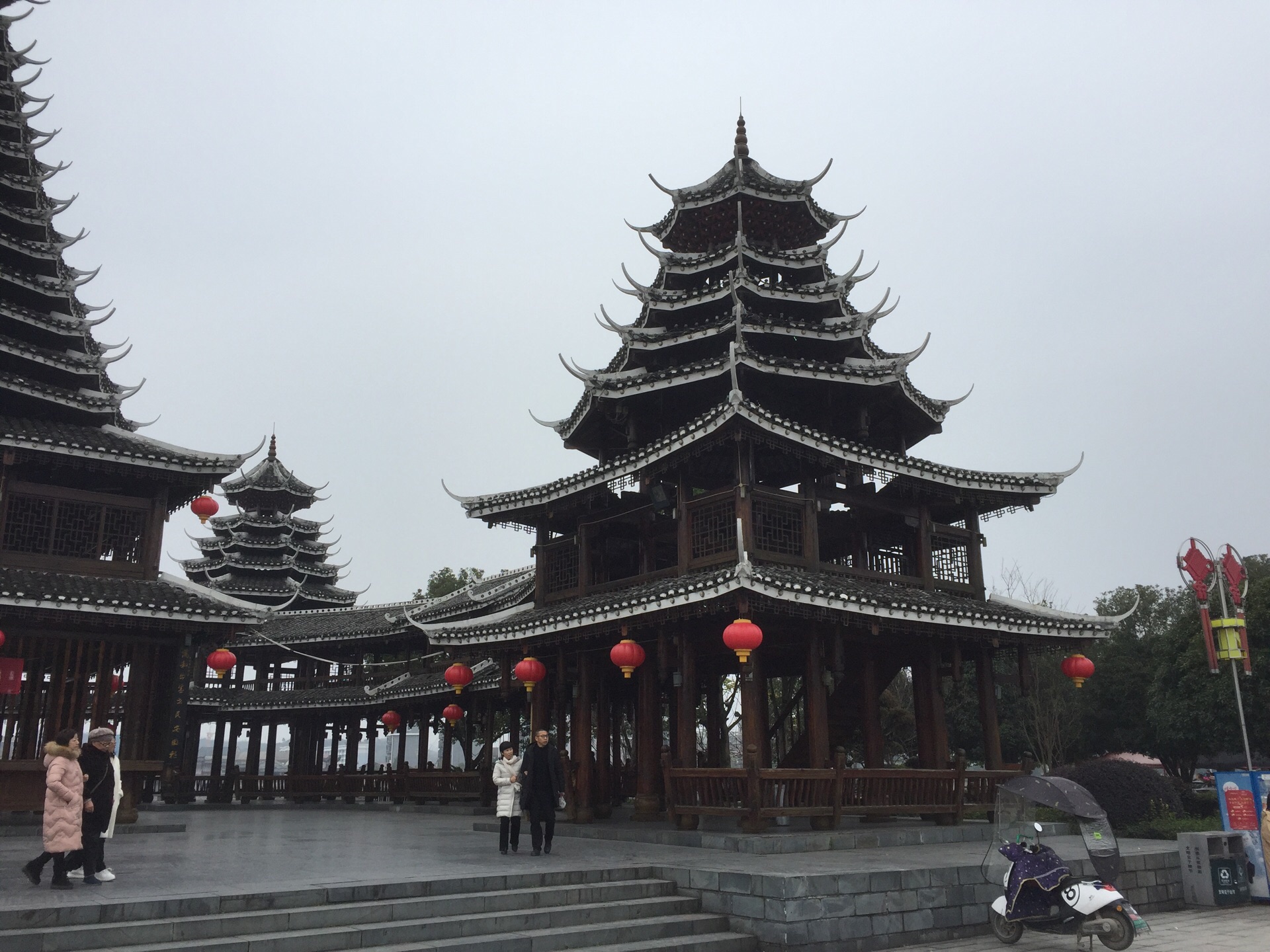 听出租车说参观完龙津风雨桥后,沿着河边走可以到达鼓楼,看完就在附近的汽车站坐车回怀化听出租车说参观完龙津风雨桥后,沿着河边走可以到达鼓楼,看完就在附近的汽车站坐车回怀化。鼓楼是全木结构,由几个塔形建筑组成,里面有如亭字般供人休息,与其他地方的侗族鼓楼一样。