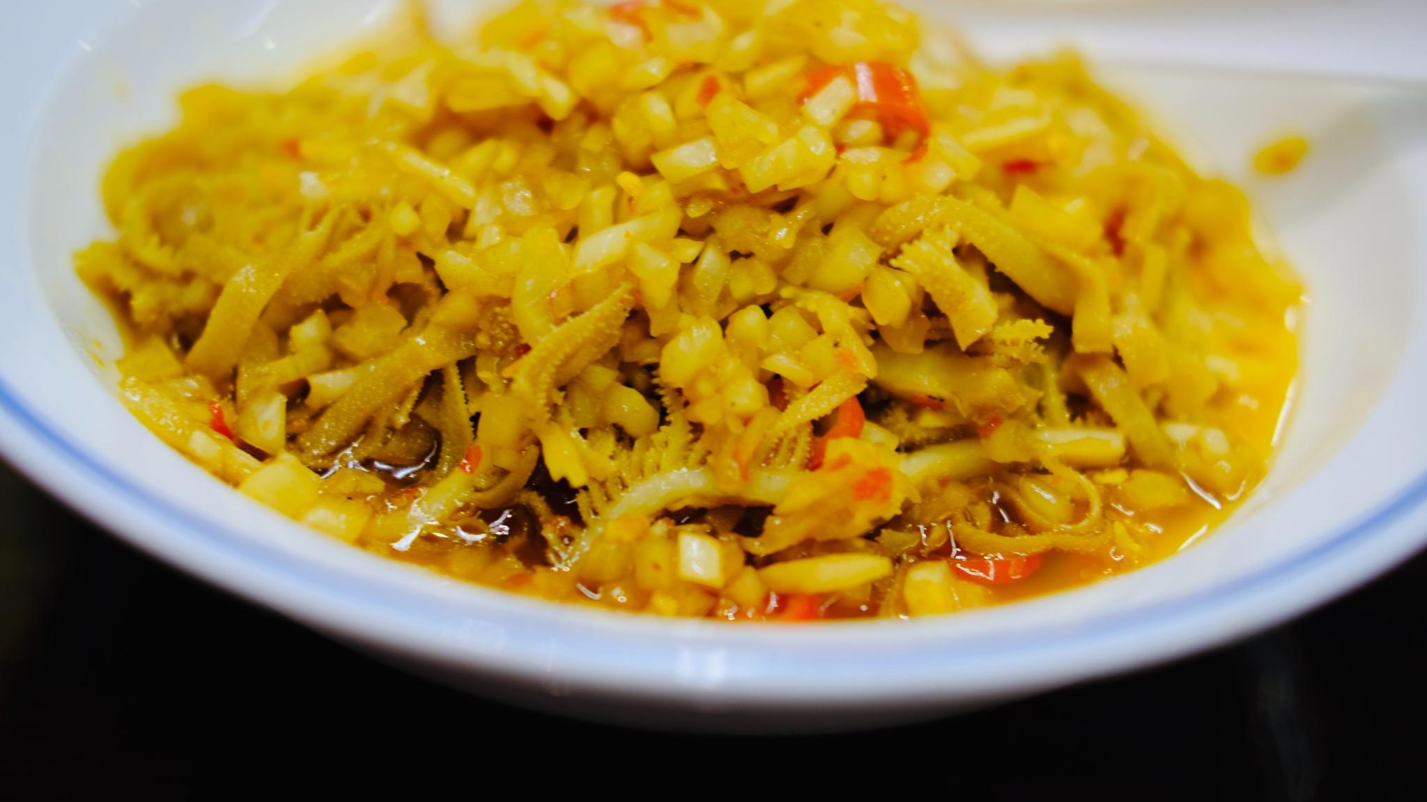 ...直往鼻子里窜改,红菜苔一点都不老,口感像芥兰与芦笋的混合,脆嫩且水分十足,浸润了腊肉的油脂香气腊肉炒红菜苔,腊肉的香混合着干辣椒的辣味直往鼻子里窜改,红菜苔一点都不老,口感像芥兰与芦笋的混合,脆嫩且水分十足,浸润了腊肉的油脂香气。
