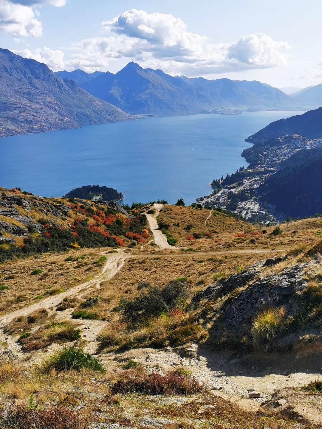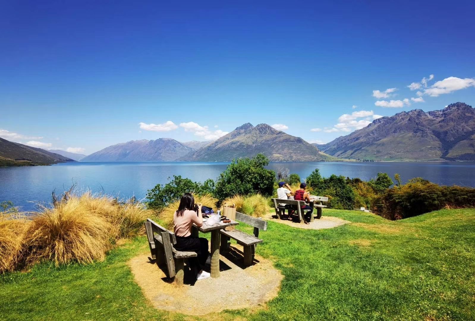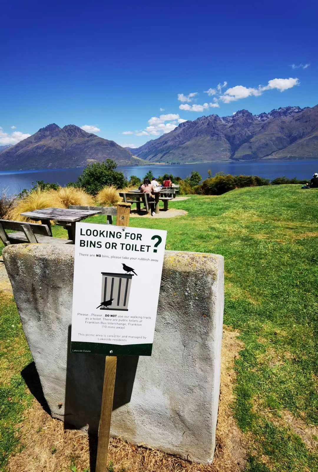 昨天的Queenstown hill track,总行程7km,风景不用说了如图所示,索道站对面山就是这次徒步的最高点。公路边休息的地方很多,一般都会建在这样有美景的地方。自驾的话如果不去城镇上找饭馆吃,在这样的地方自带食物解决一餐最好不过了,省钱又舒服。