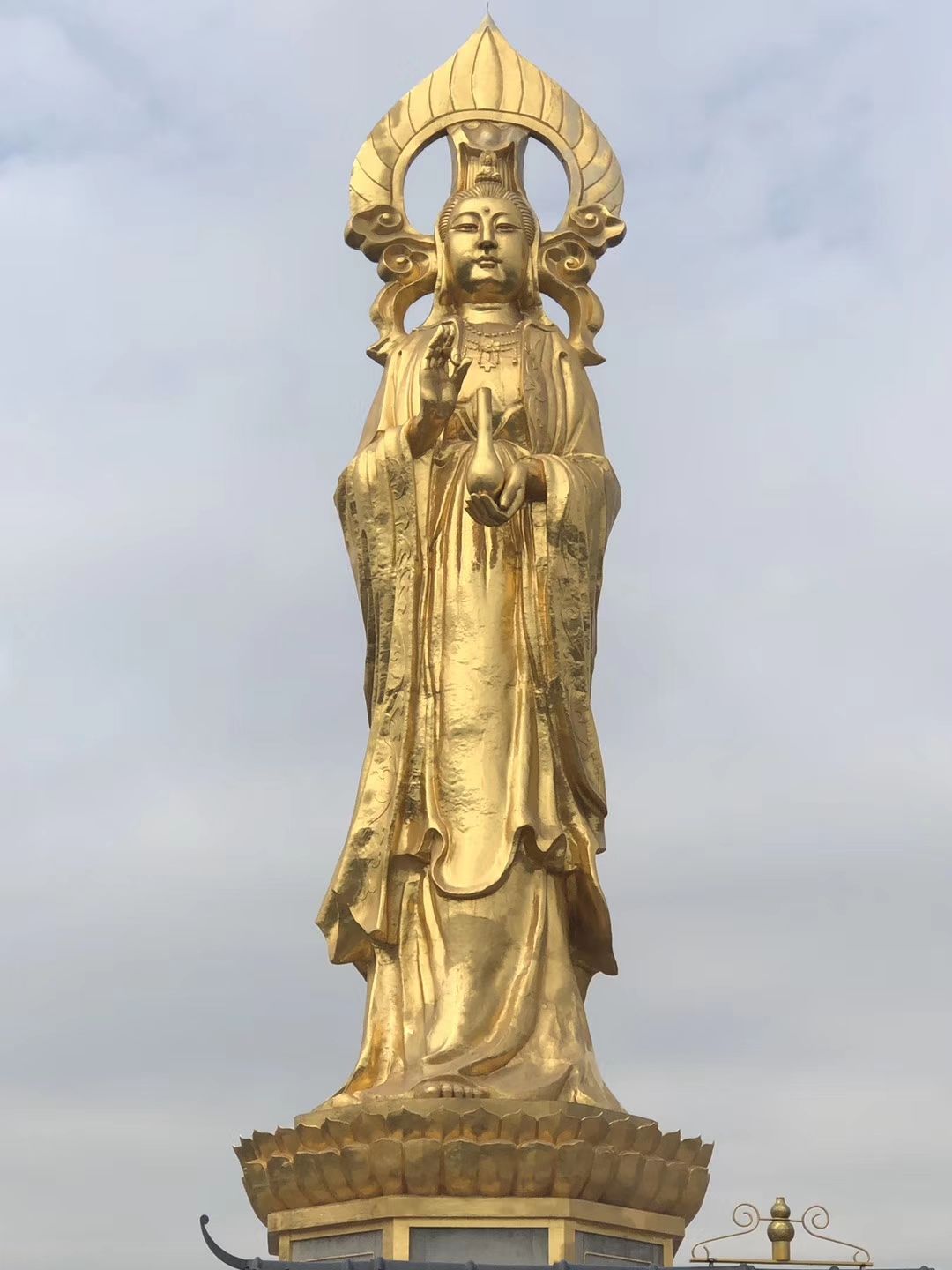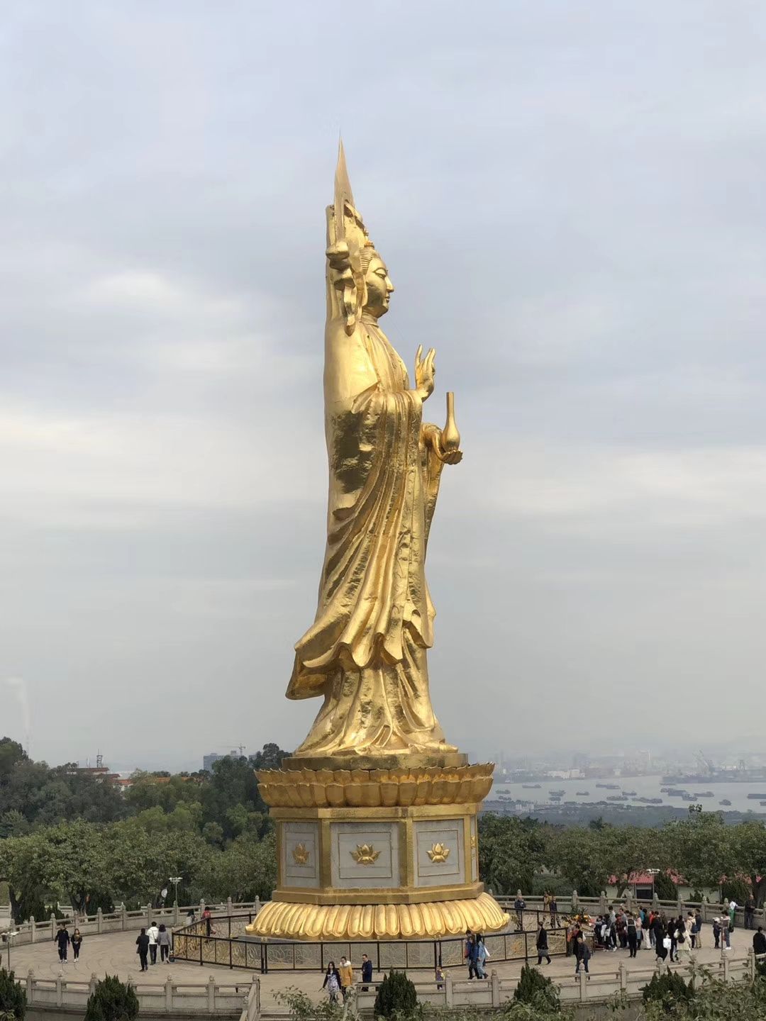 广州市番禺区莲花山望海观音是世界上最高的箔金观音立像今天是小年哦,特意到莲花山望海观音一游,愿你们我们心随所愿! 广州市番禺区莲花山望海观音是世界上最高的箔金观音立像。她手持玉净瓶,慈眉善目,俯视南海,仿佛在为人们祝愿风调雨顺,国泰民安。