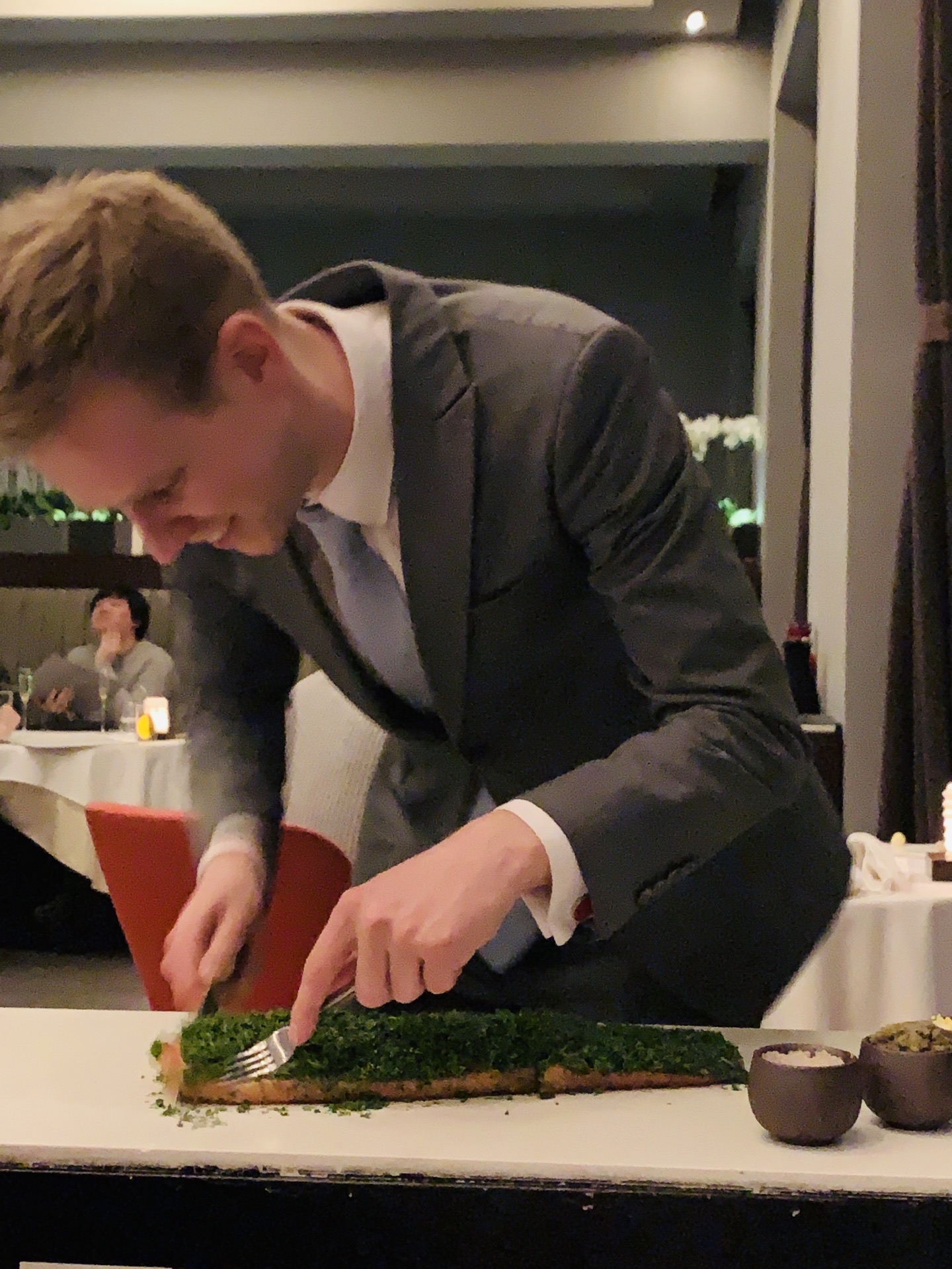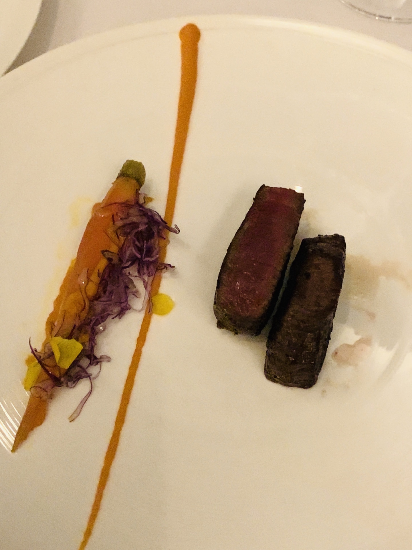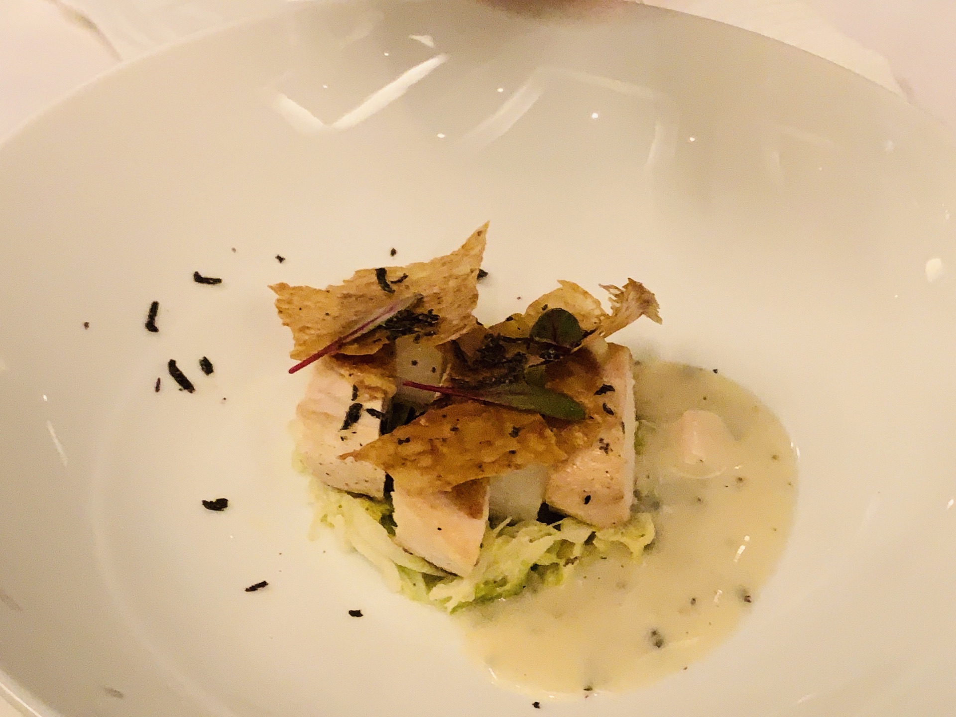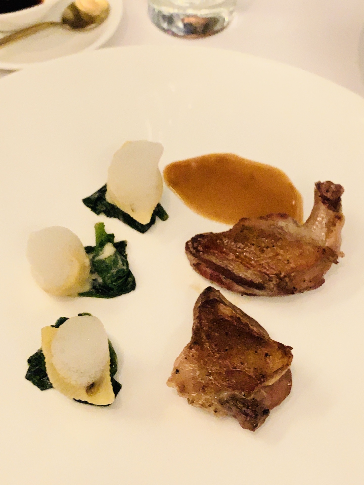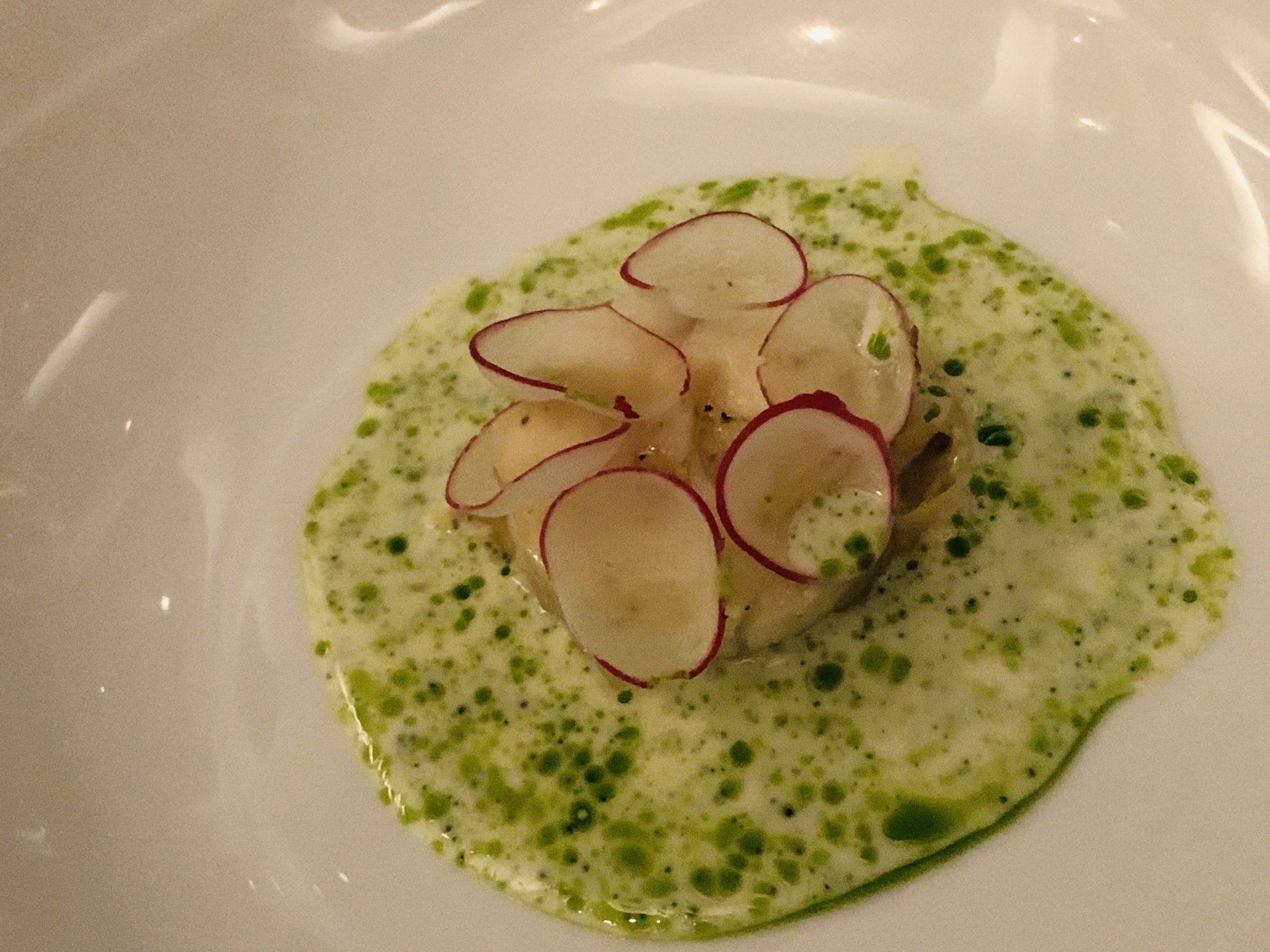 米其林北京餐厅ing 见证了TRB在北京的渐变之路,再次回到创始店,环境依旧,服务up餐品质量也在不断进步谦逊了,原有的仪式感持续保持,也是夺得米其林推荐的先觉。不过我们一致认为菜品的确还有上升空间。 餐前小食和小杯气泡酒的前戏十足诚意,清爽开胃。刚刚滑雪归来的朋友居然喝完有点小醉,烛光更加迷离了[捂脸] 接下来的鹅肝、扇贝一股脑都匀给了我,一人吸收double着实有点吃不消了。TRB每一道菜品尤其主菜执着于酱汁的调配,服务生仪式感的确有了,以至酱重于食材本味,想象许多食材一股脑涌进舌喉,省去了前调中调,后调是调和一体的,一早起来回味半天居然忘记昨晚吃了什么影响至深的食味呢。