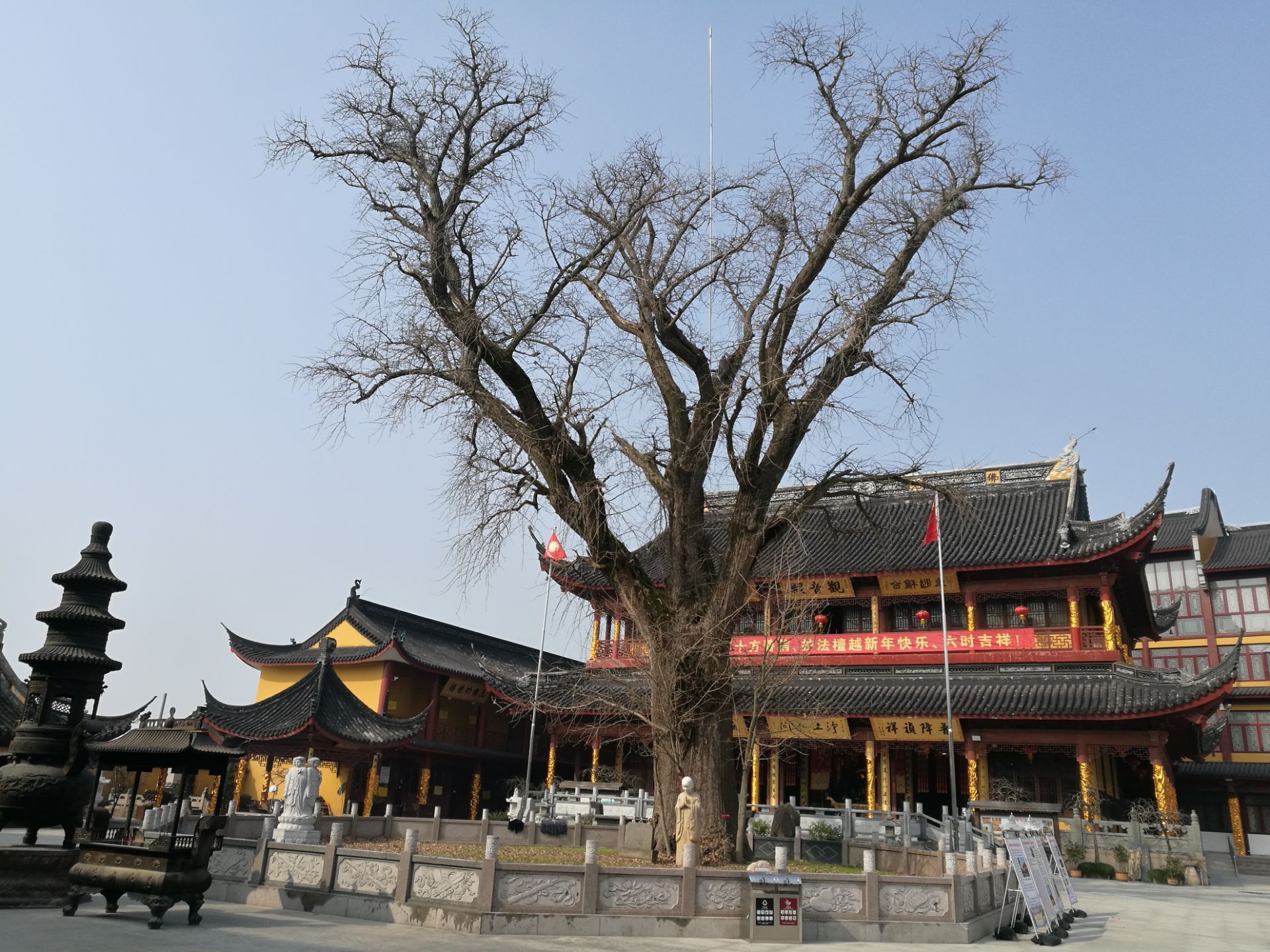 寺庙在淀山湖旁边,不收门票,规模不大,庙内有一颗古老的银杏树,中午有素斋供应,10元/位