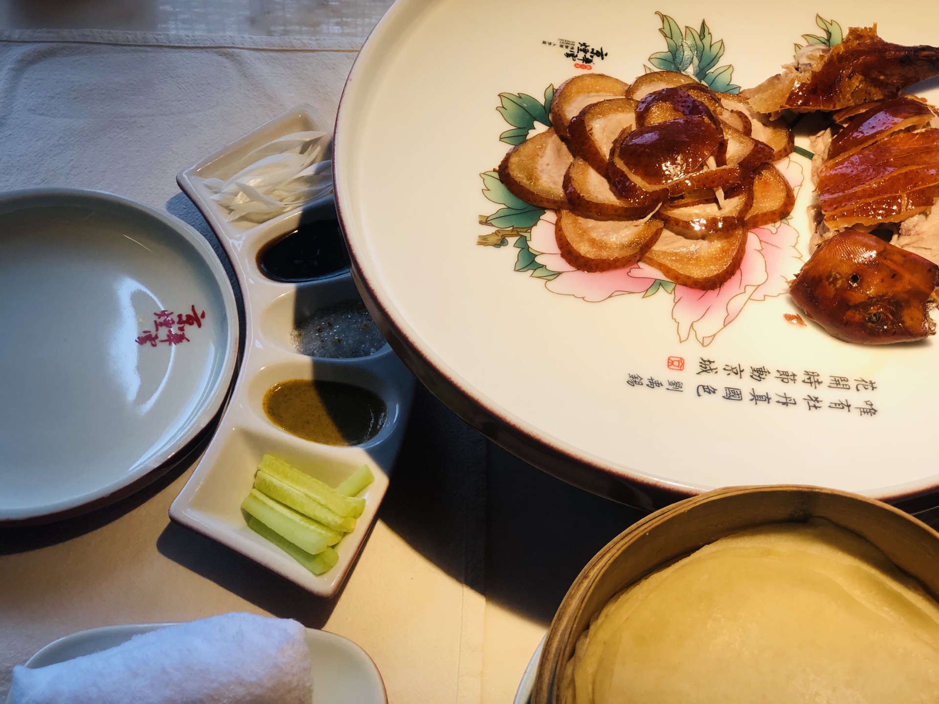 幽暗的灯光,曼妙的氛围,自有别样滋味在心头~鸭肉和小葱黄瓜这么一配,红香绿玉,顶好看呢