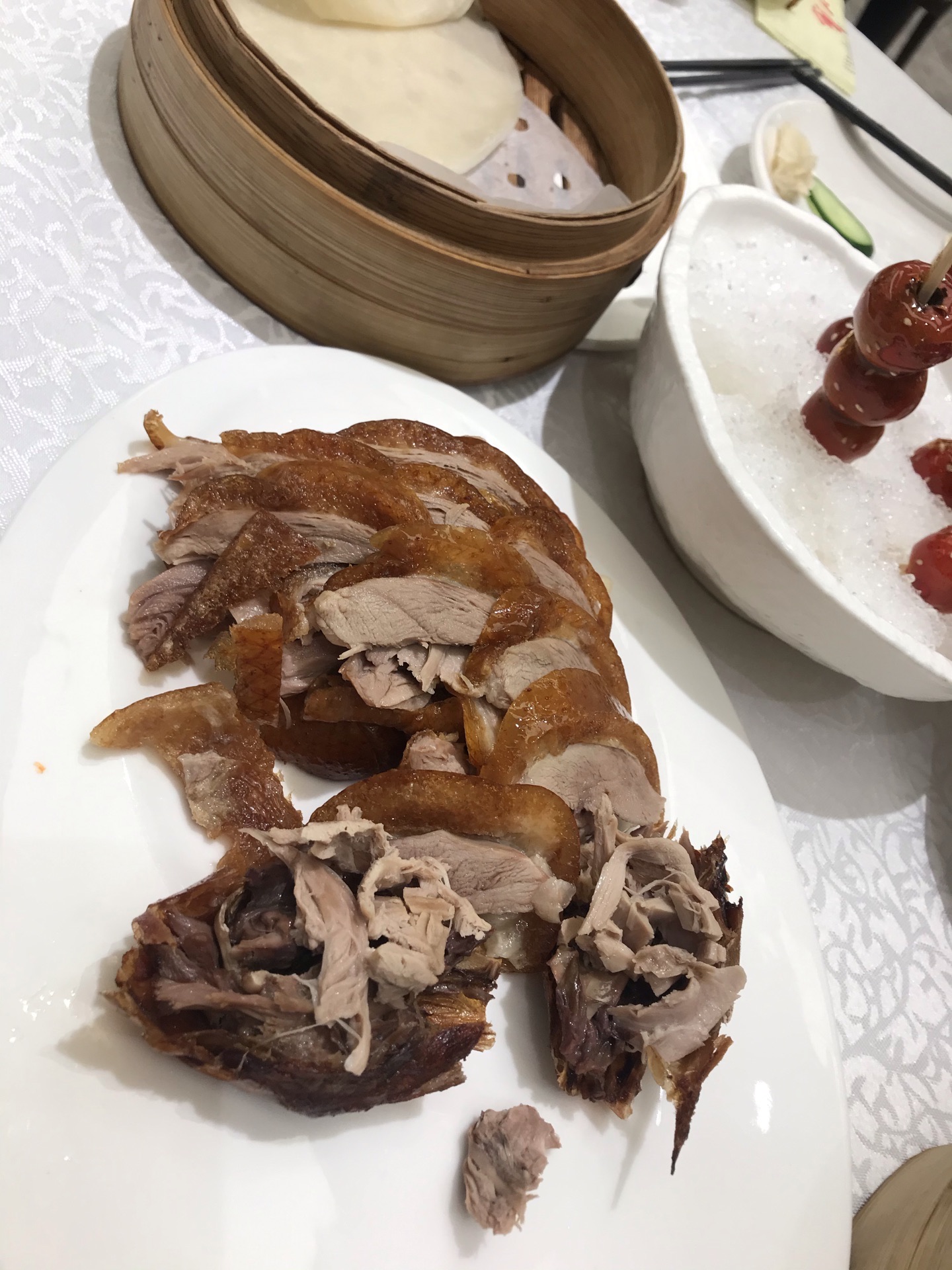 这家全聚德真的比上海的好吃多了,除了点心是中看不中吃,其他菜都很好吃。特别是烤鸭不用说了,一定要趁热吃,酥脆的鸭皮混合着鸭肉的香味,我一连吃了好几个。冰糖葫芦也是惊喜,饭后来一串解馋又解腻。不过服务真的是很一般,有待加强。