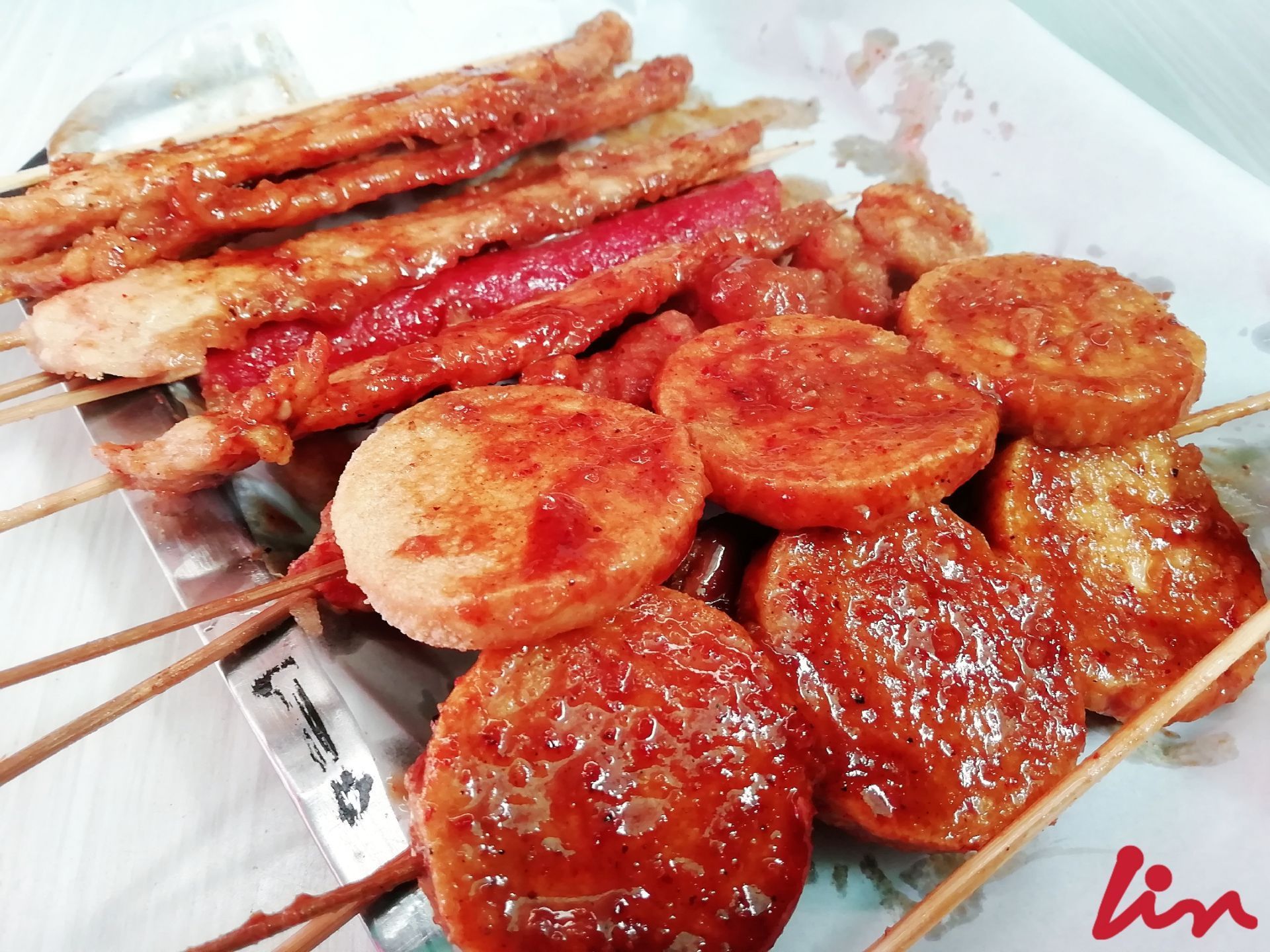 传说中的网红炸串 位置~大学路上 老舍故居后门冲着的那个居民楼下~从小路咖啡☕往里走到头就是~露天的 [服务铃]服务:自己选好串交给大爷找地方坐就行|鸡胸肉^|素鸡^|鸡心^|火腿肠^因为临近过年所以品种不太多选择余地太小~老式的裹面炸刷酱~趁热吃还可以~价格不算便宜 吃吃玩玩还行