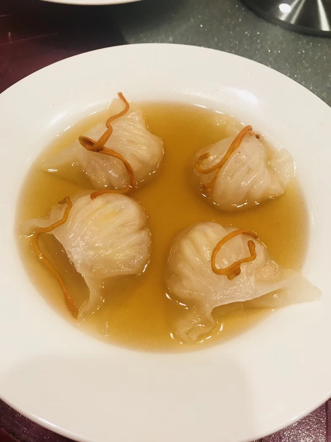 网友2020-01-22虫草花鸡汤虾饺、桃胶双皮奶、叉烧酥、春卷好吃中酒四季厅,老式茶楼,有很多怀旧点心,怀旧鸡包仔、蜂巢芋角;虫草花鸡汤虾饺、桃胶双皮奶、叉烧酥、春卷好吃;柴鱼花生粥惊艳,花生和柴鱼融入粥里,粥很绵,早上喝一碗粥整个人都感觉好舒服。