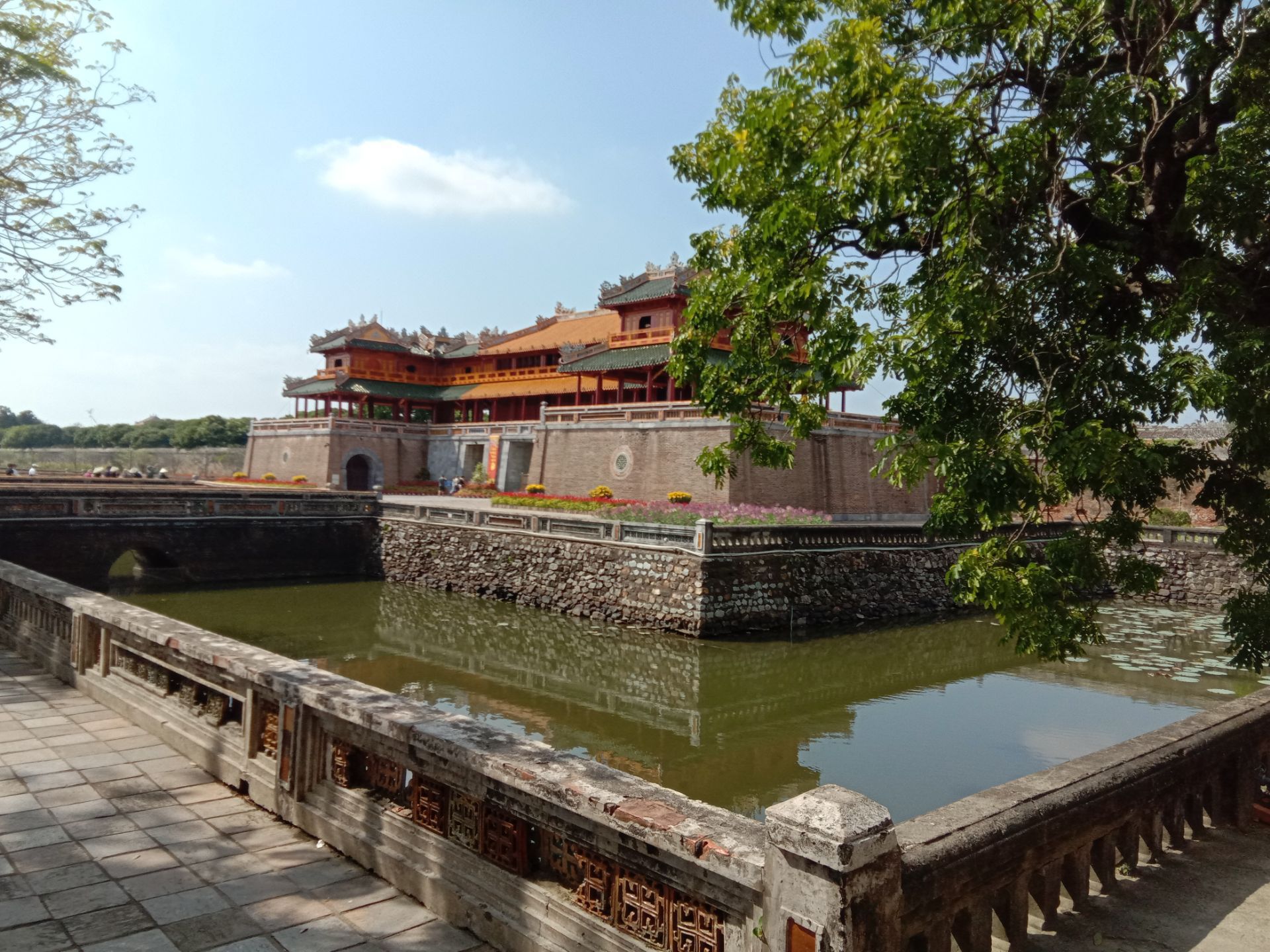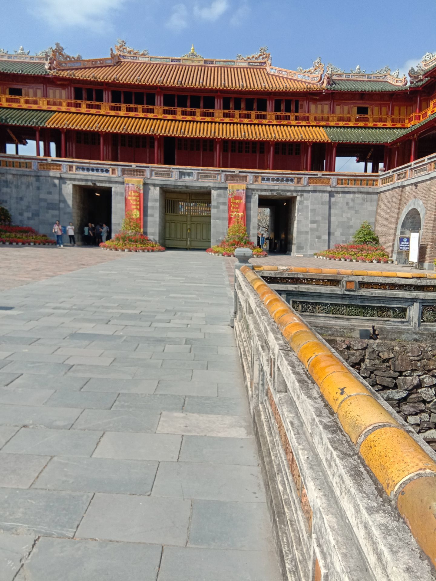 赶上一对新人在拍婚纱照,就在皇帝走的御道上面,很添喜庆,给这里的沧桑增加了不少喜感赶上一对新人在拍婚纱照,就在皇帝走的御道上面,很添喜庆,给这里的沧桑增加了不少喜感。这里是大内的正门。原来在那里的城门楼上有一副胡志明画像也不知那里去了。