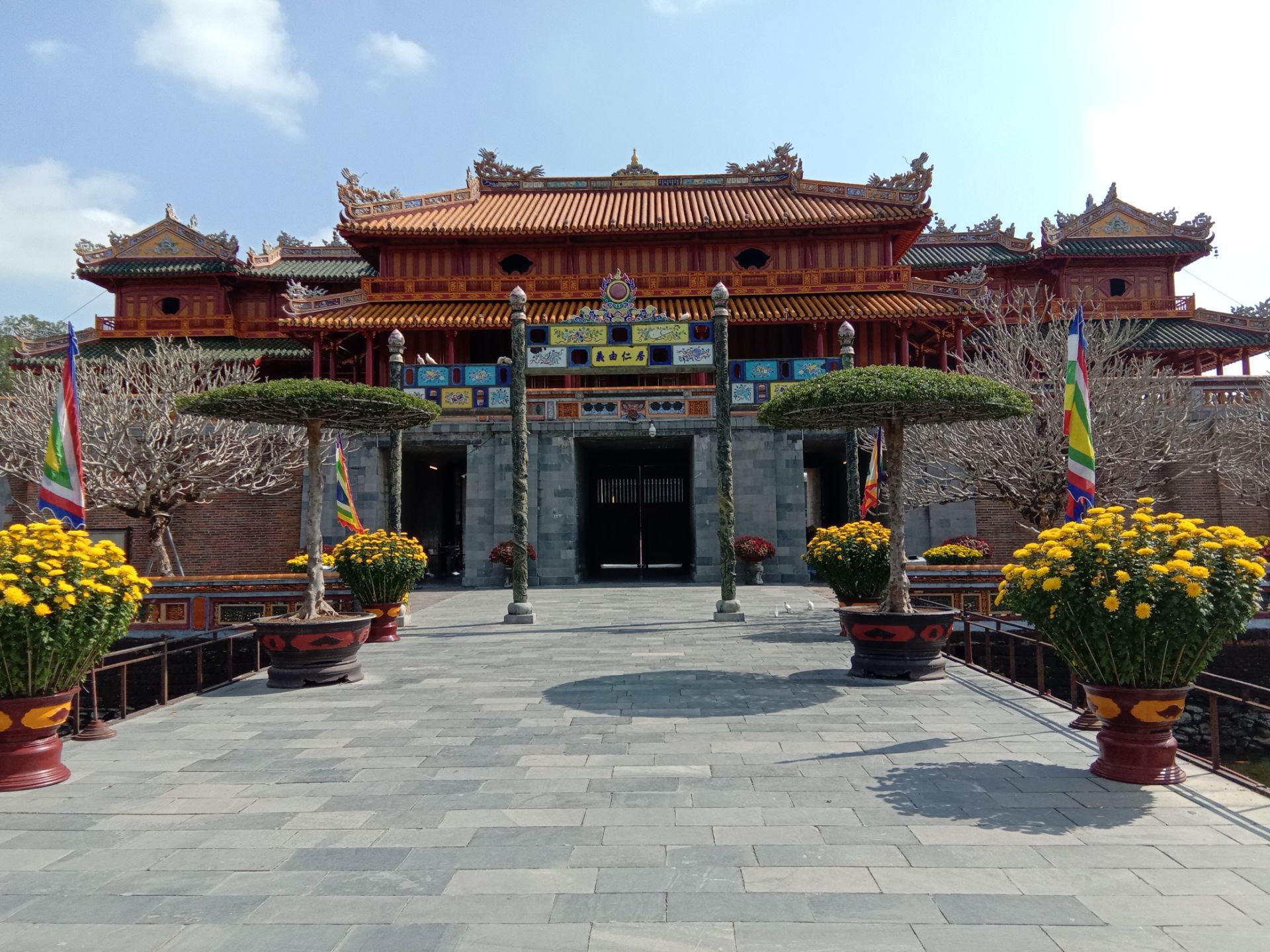 网友2020-01-22赶上一对新人在拍婚纱照,就在皇帝走的御道上面,很添喜庆,给这里的沧桑增加了不少喜感赶上一对新人在拍婚纱照,就在皇帝走的御道上面,很添喜庆,给这里的沧桑增加了不少喜感。这里是大内的正门。原来在那里的城门楼上有一副胡志明画像也不知那里去了。
