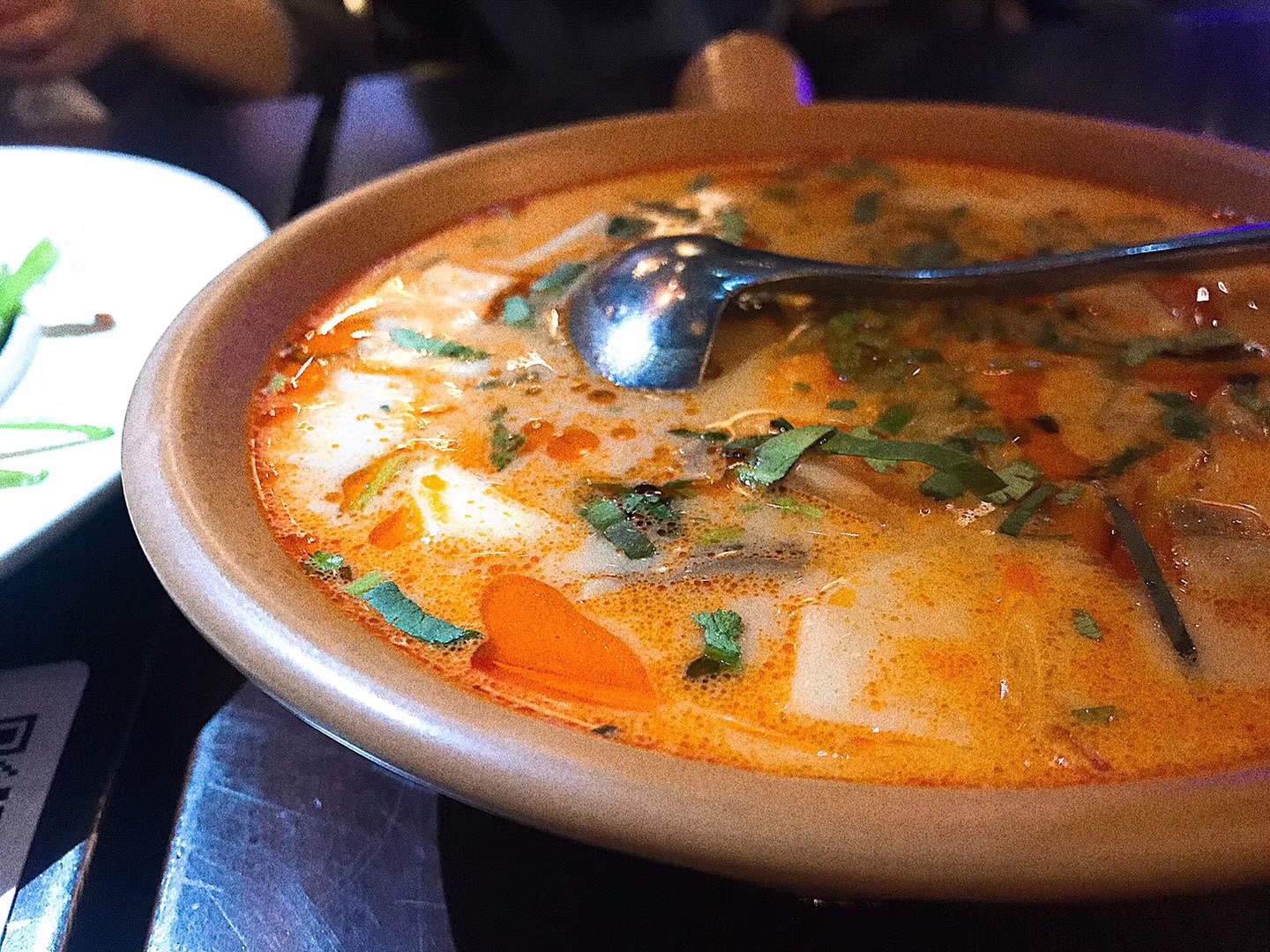 网友2020-01-23过节吃泰国菜也是很好的选择,咖喱蟹拌饭简直不要太爽!菠萝炒饭太好吃了也,大颗腰果过节吃泰国菜也是很好的选择,咖喱蟹拌饭简直不要太爽!冬阴功味道比较重,挺辣不过很爽;菠萝炒饭太好吃了也,大颗腰果;咖喱蟹 味道浓郁 虾肉新鲜 非常不错的一家餐厅