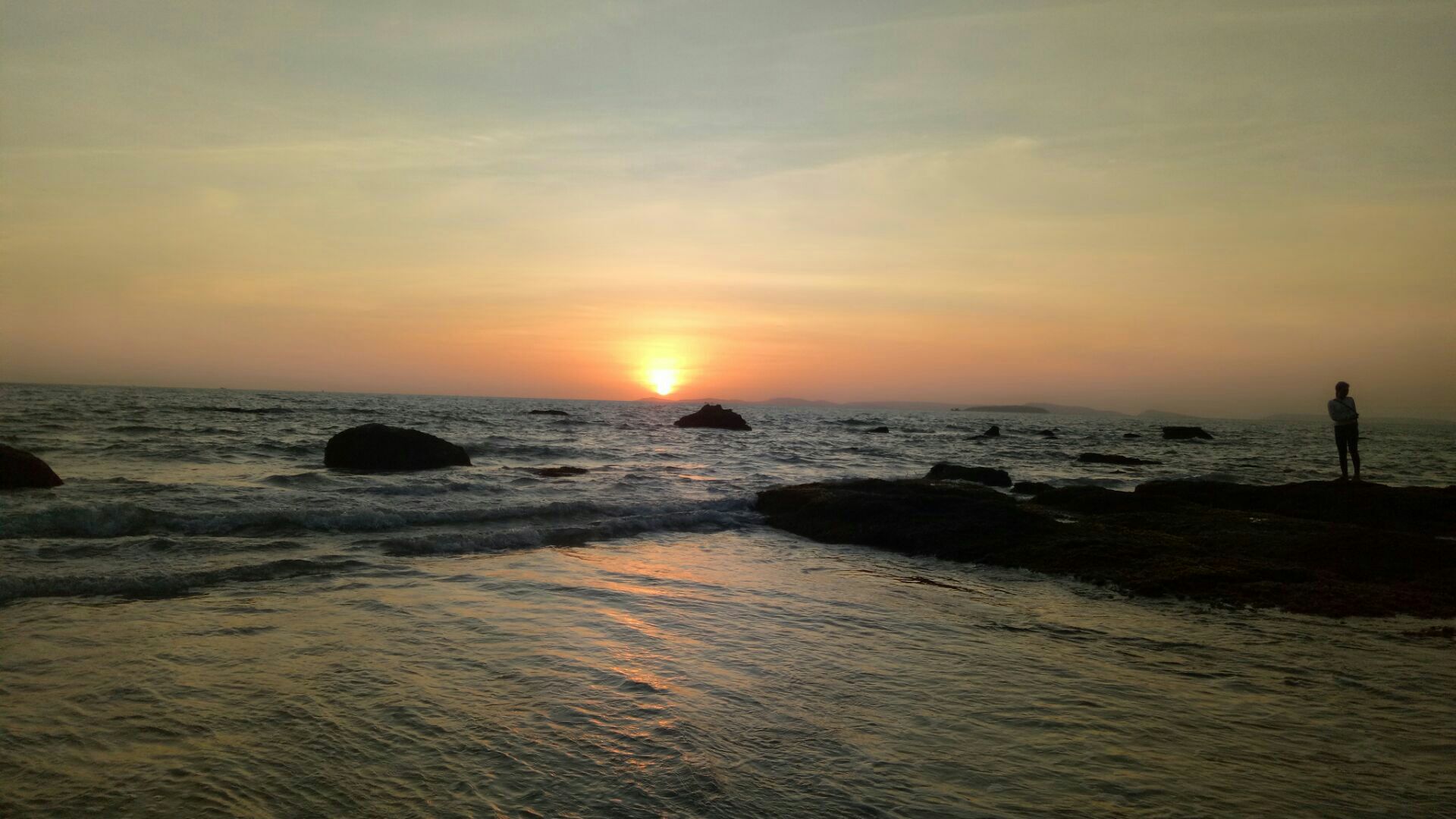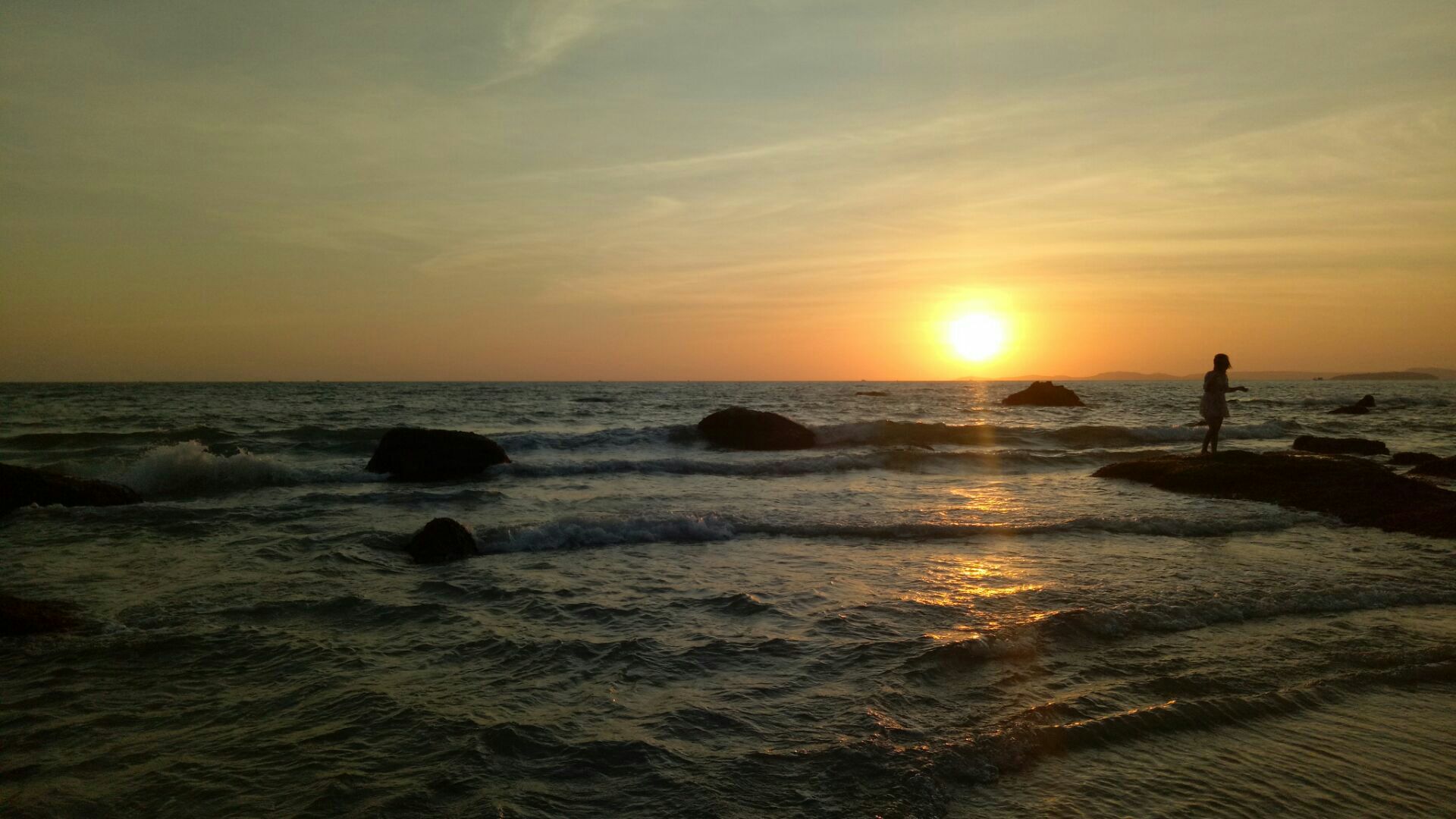 日落很美,海也算干净,不过不是那种蓝蓝的