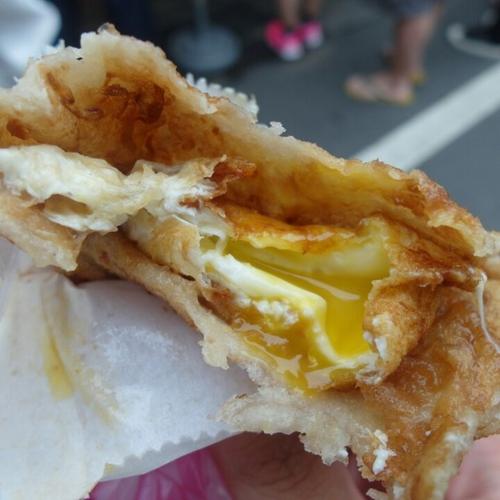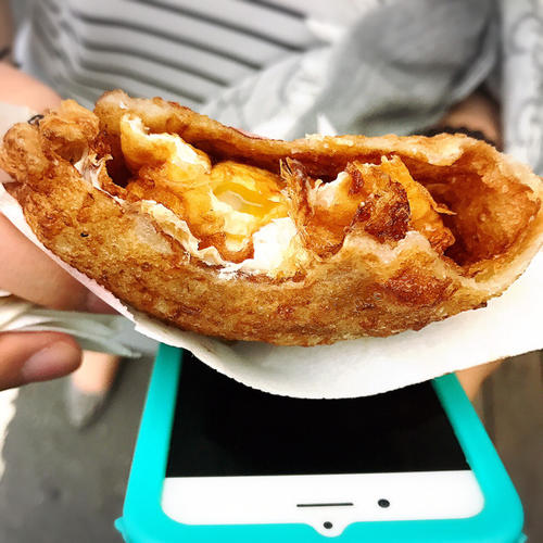 油而不腻,饼非常好吃,之前已经被预告过,所以没有把衣服毁了。推荐推荐!炸得脆脆的面饼上加上一个半生的荷包蛋,一口咬下,脆脆饼皮与流出来蛋黄结合后,口感极佳!油而不腻,饼非常好吃,之前已经被预告过,所以没有把衣服毁了。
