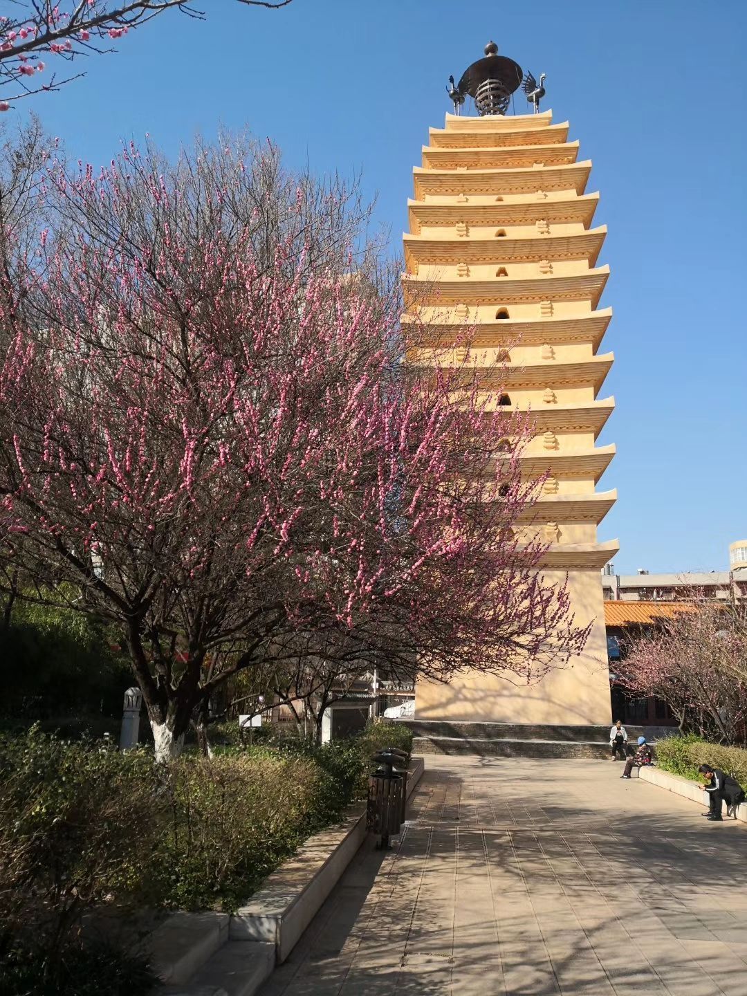 东寺塔系四方形十三层密檐式空心砖塔,高40.57米,底层南面辟门,从第二层起檐上四面均开有券洞,每洞内置石雕佛像1尊。塔的顶宝上立有4只铜铸金翅鸟,故又称金鸡塔。与西寺塔东西遥相对峙。 西寺塔现塔通高35.54米,塔形与大理崇圣寺塔主塔相似,为四方形、十三层密檐式空心砖塔。
