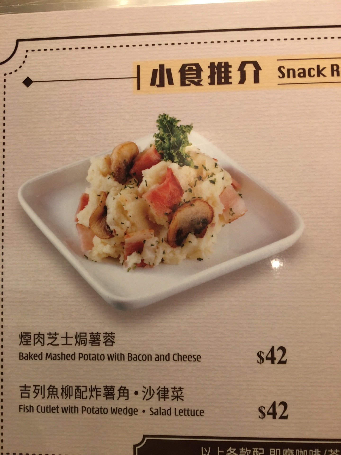 当做下午茶吃一下是很好的,味道不错,很喜欢信德中心里面的这一家餐厅有一点点小清新的感觉,美心集团旗下的品质是一定有保证的。腌肉焗薯蓉,薯蓉也就是土豆泥,大多的女孩子都喜欢吃的,我也不例外。当做下午茶吃一下是很好的,味道不错,很喜欢