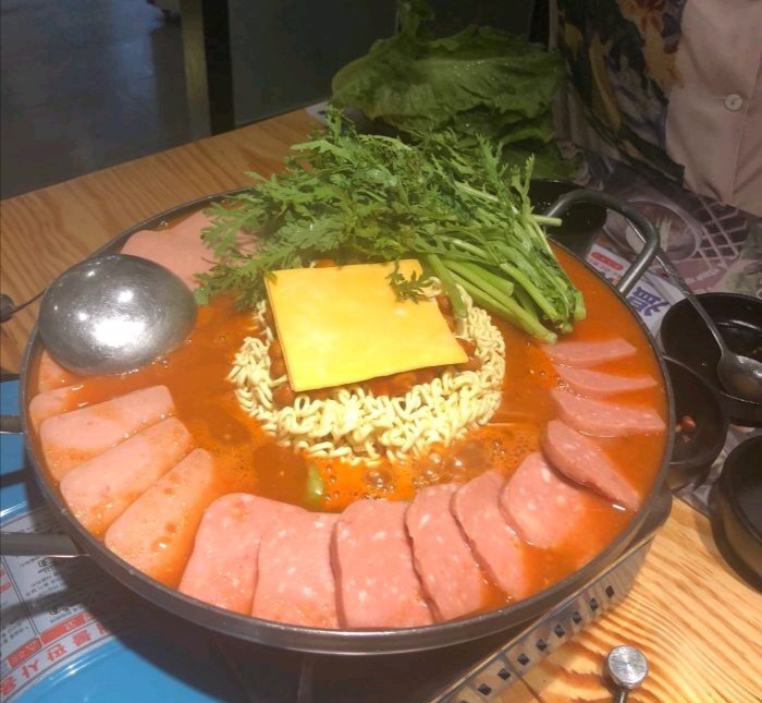 听说这家店开了很久了是韩国老板 就闻名来尝尝味道 环境在将军大酒店边上也不难找 门口可以停车车位有限也收费 服务]中午去的感觉服务员没几个也不太积极自己找了座位 「烤五花肉」烤肉必点猪五花配上泡菜卷上生菜再配点酱可好吃了 「部队火锅」锅子挺浅的怕汤会溢出来只能等它慢慢煮味道和其他店的差不了多少「水冷面」夏天去的话点碗冷面酸酸甜甜冰冰凉凉很合适了 「秘制牛肉」这个好吃推荐