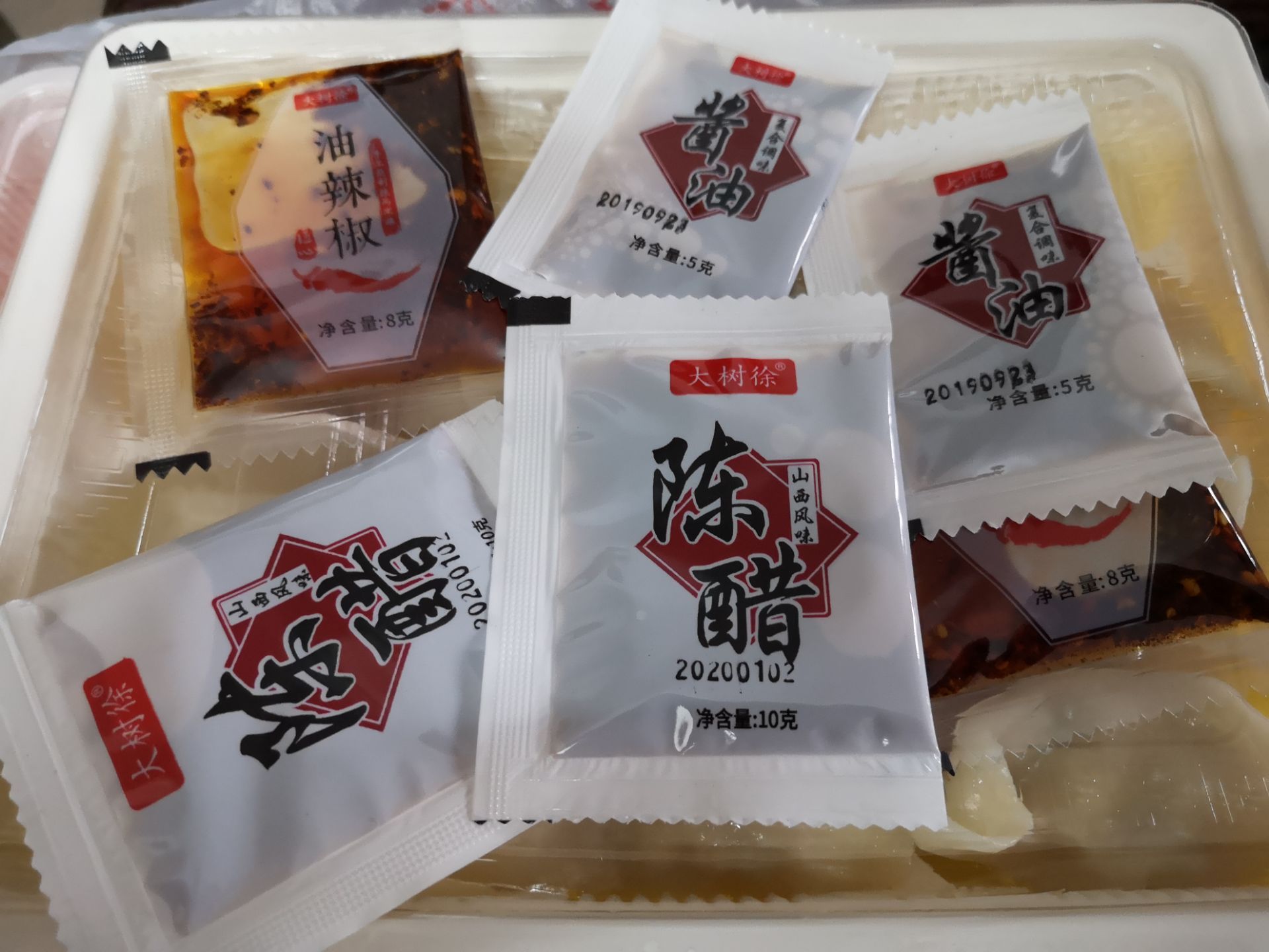 还有餐具,看起来包装也是挺好的,装饺子的盒子还有一个专门的酱料格子,可以把陈醋,还有一些蒜泥之...有他们家餐馆专用的袋子,还有餐具,看起来包装也是挺好的,装饺子的盒子还有一个专门的酱料格子,可以把陈醋,还有一些蒜泥之类的放进去。