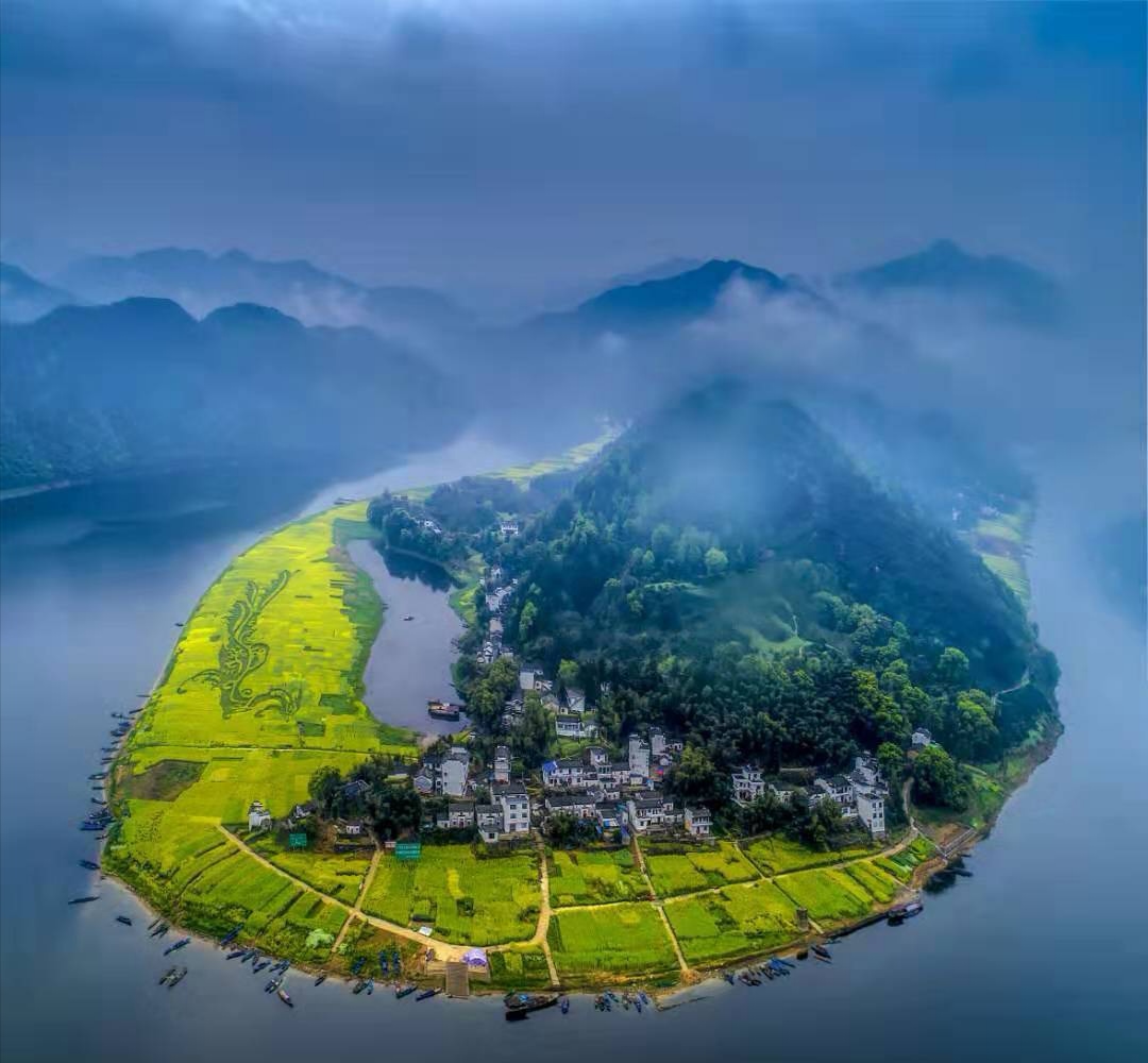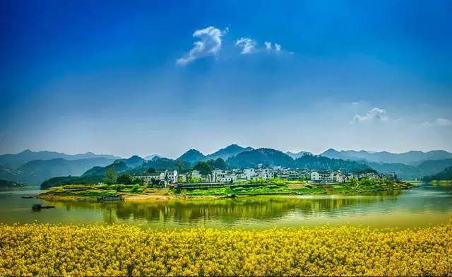 醉美徽州,三月里的徽州是春季醉美的山区。粉黛桃花,灿烂金黄的油菜花,乘坐游船,漫步新安江山水画廊,宛若游走在一副美丽的山水画之中,何其美哉! 新安江山水画廊位于黄山市歙县深渡古镇,可以从歙县客运中心乘坐大巴直达深渡镇码头。码头附近风景绝伦,选一家民宿,住在山水画中,非常不错!