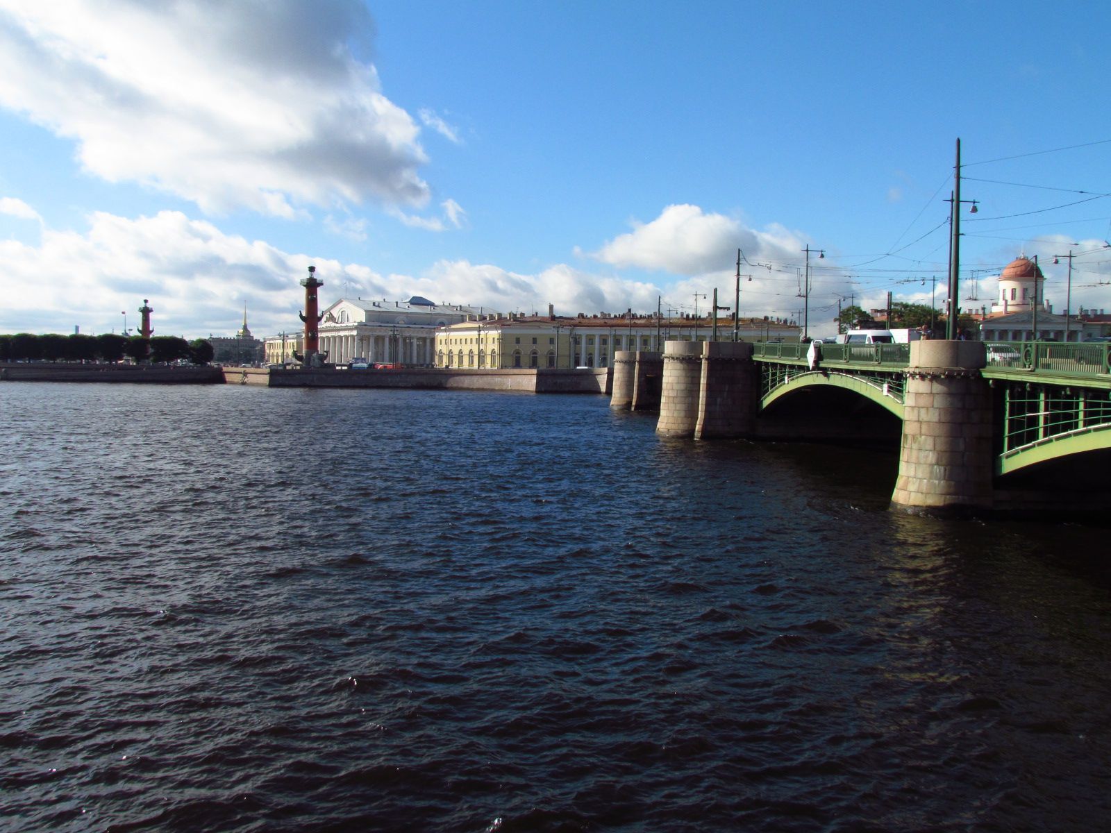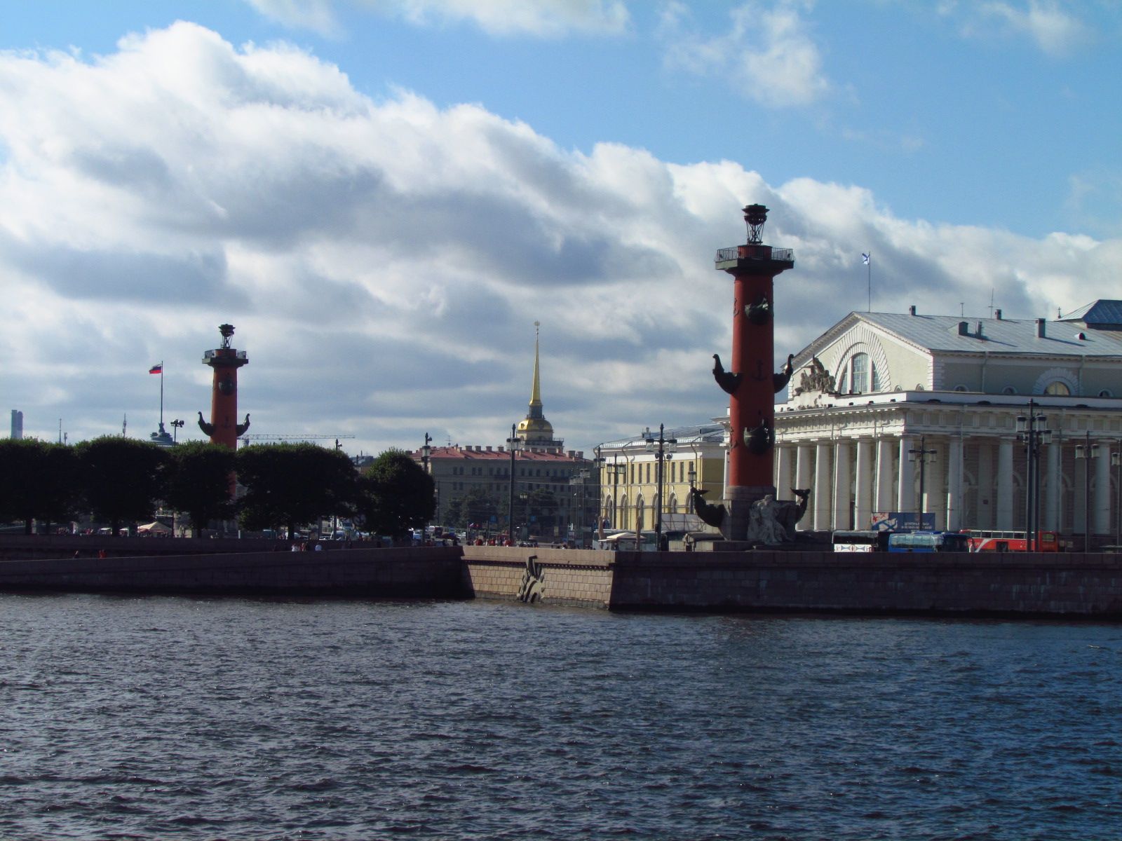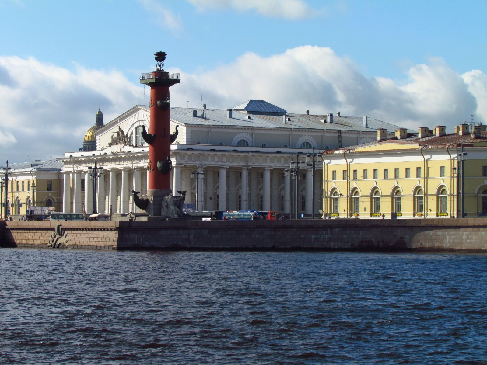 瓦西里耶夫斯基岛的斯特列尔卡上的这两根柱子像宫殿桥的开放拱门,圣以撒大教堂的圆顶或金钟的尖顶一...