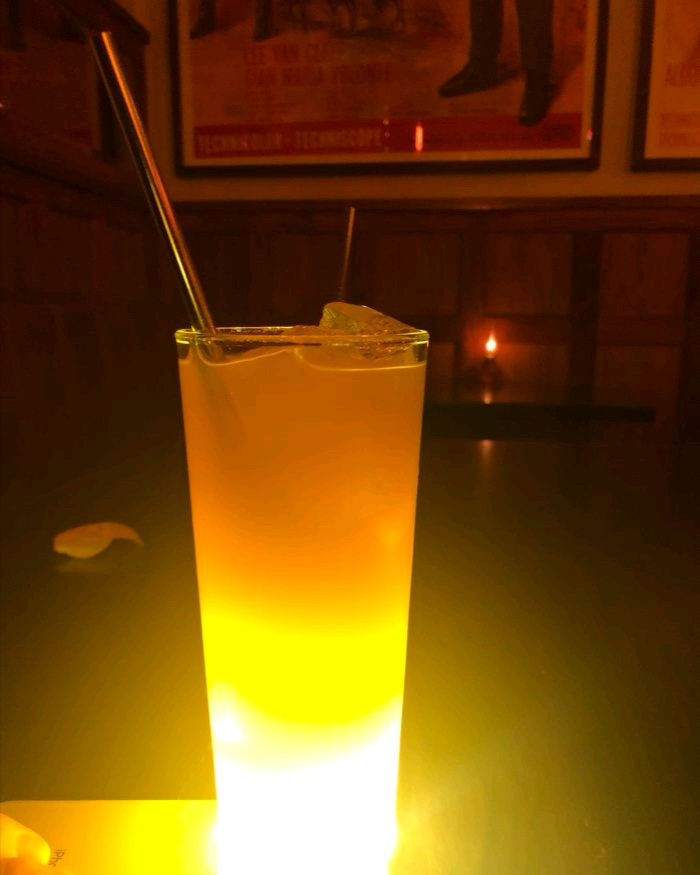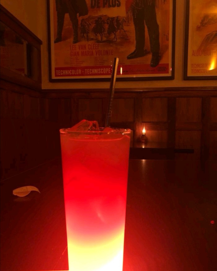 ...酒不错,白天是做餐厅的,里面的海报我觉得挺不错的,鸡尾酒放在灯光下面非常的好看,晚上也比较安静有点美国西部风格的酒吧哦,里面的鸡尾酒不错,白天是做餐厅的,里面的海报我觉得挺不错的,鸡尾酒放在灯光下面非常的好看,晚上也比较安静。