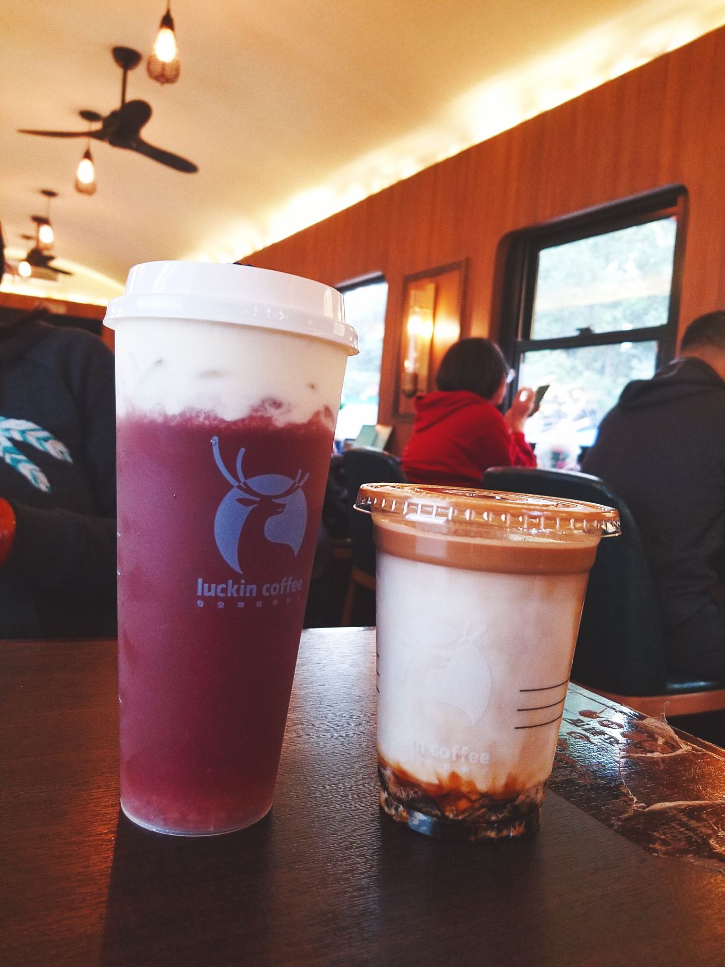 绿皮车里喝喝咖灰,有趣 2019-12-14 就是为了这节绿皮车而来前几年也来过车厢里的"彼此的茶",当然店铺已经又被艾小米干掉了(又……),不过和现在同样车厢里的瑞幸比,彼此的茶,很不火车! 礼拜六的下午,座无虚席推开车厢门当时就震惊了,感觉自己的脚都伸不进去,还好三当家坚持了,站着等了会儿座位,很巧没多久就有了一个空位! 【环境】真的就是还原绿皮车厢里的一切,除了火车座位,还有很多车厢里的小细节都保留着,大家可以自己去找找看咯,所以来拍照的小姐姐很多! 【口味】 |陨石拿铁^27,只能做冷的,主要就是看分层吧,据之前喝过的三当家说,这家店做得有点偷工减料,说里面的寒天晶球和奶都少放了,所以颜值和口感都打折了,后来提出来,店员承认了又加了点料 |桃桃芝士红宝石茶^27,星人艾小米想喝莓莓,瑞幸常客三当家表示看了配方,莓莓的茶比较差不如桃桃桃桃味道还不错吧,不过奶盖少了一切整体都淡了些,当然瑞幸本来的特色就是……淡 【服务】人手太紧张,收桌子基本靠客人自己半自助 金主买单,据说是对折券,感觉不开心