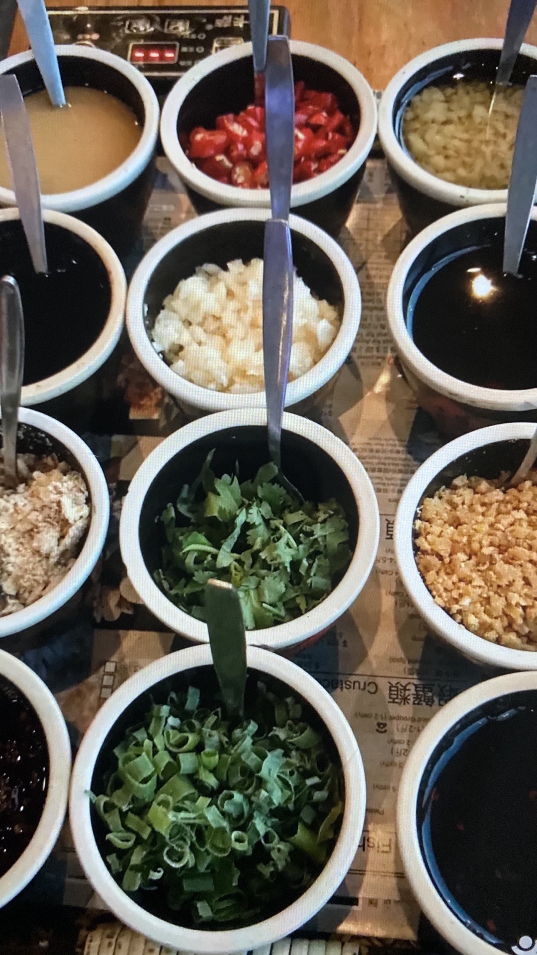 油碟非常齐全,食物选择丰富,肥牛,响铃,豆腐,海鲜拼盘,三色面条,分量还是很不错哒,就是服务人手不足