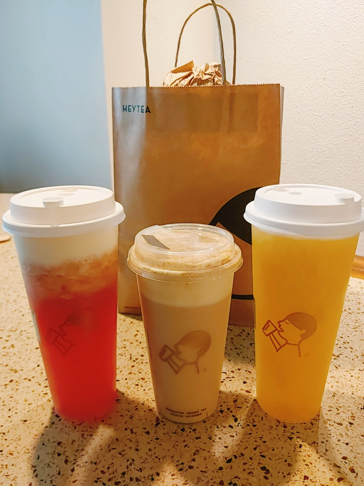 喜茶喜茶 一直牵牵挂挂 自从某牌黑糖珍珠奶茶不给调节冰度之后 就投奔了喜茶的黑糖波波 几乎路过就来一杯 这次新出了豆乳波波 立马飞奔过来 真心好喝啊 调节了半糖 味道刚刚好 上面的豆乳芝士用勺子喝 很快消灭一杯 还有水果乳酪 味道也不错