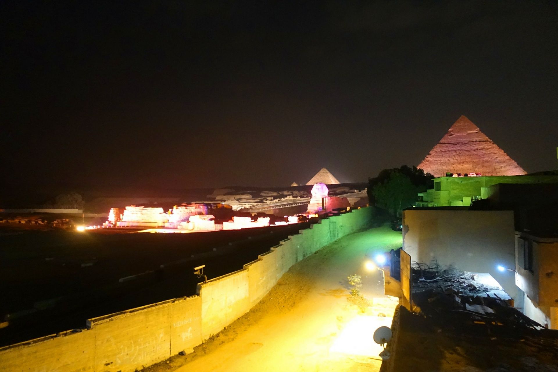 来到开罗游览金字塔,不仅要在白天领略金字塔的雄伟,也要在晚上观看这里的声光秀。届时金字塔会呈现出各式各样的颜色,而且会有激光电影在金字塔的表面放映,非常的好看,其中绝大部分都是描述古埃及文明的影片,绝对值得欣赏一下。