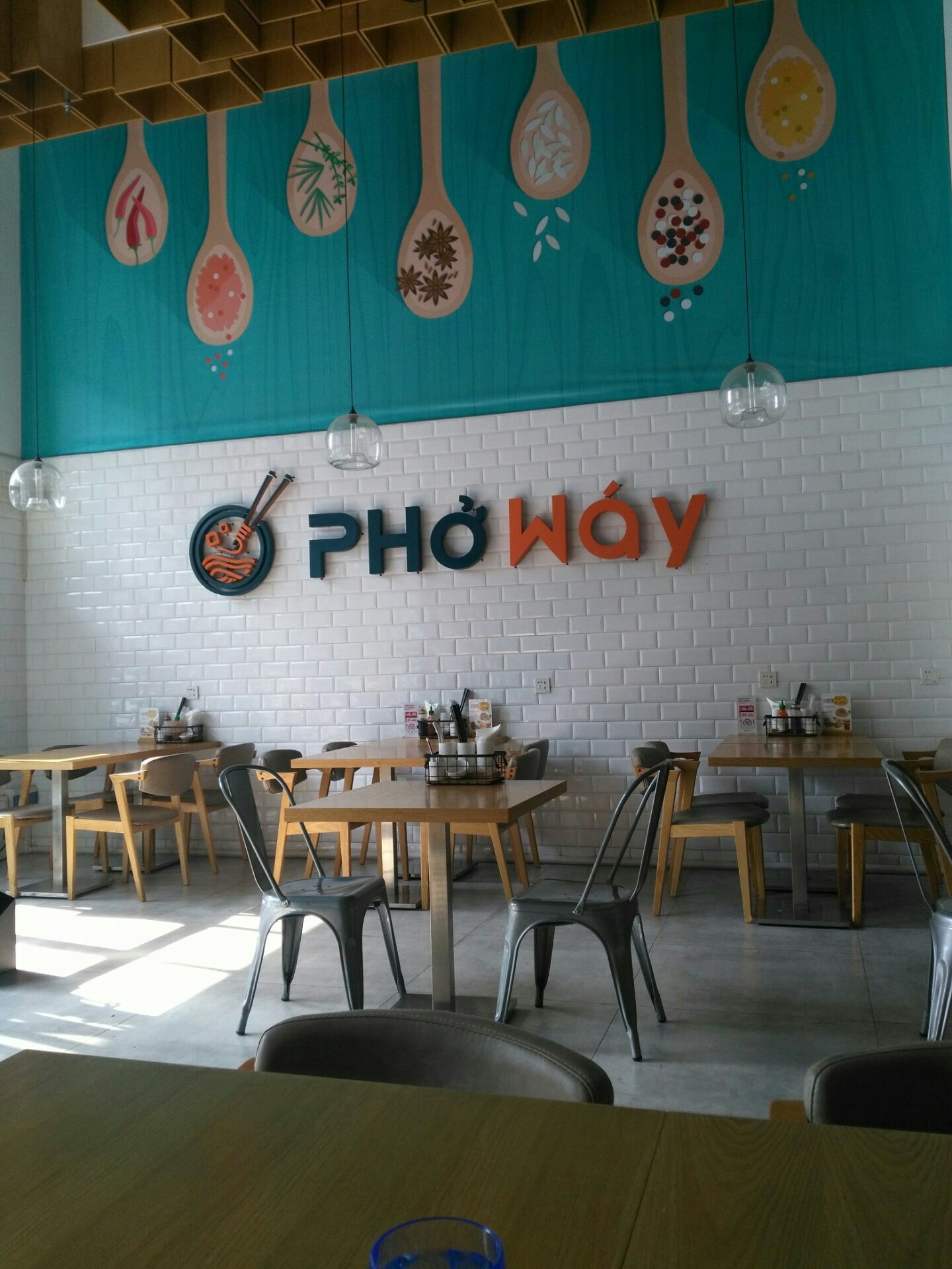 越风味是一家经营越南菜的餐厅,位于南城鸿福路口附近,往鸿福桥方向再走一段距离才到哦。门面还是挺有特色的,一眼就看到了(见图一)。店内环境不错,感觉舒服,设计简约(见图二)。桌椅也是简单的款式,收银台后面墙上的架子上摆放了绿植,看着清爽(见图三)。