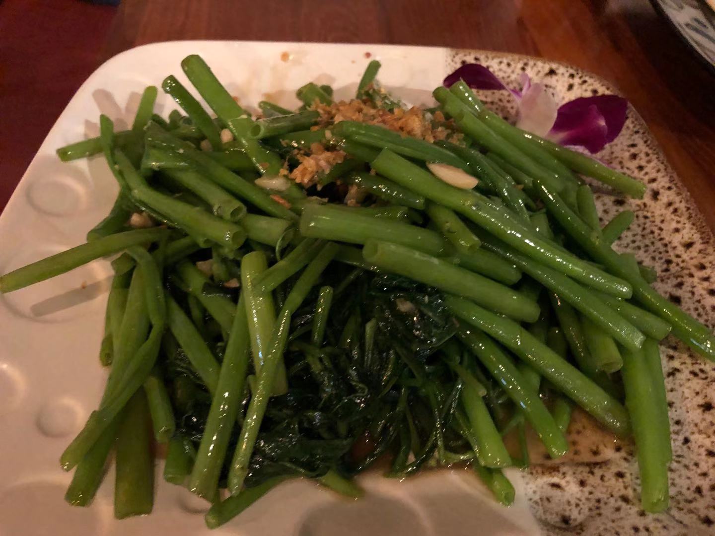 连吃两顿,最推荐荷叶鸡,用新鲜的荷叶包裹着炸好的鸡肉,荷叶的清香就和鸡肉的鲜嫩融合在了一起,再蘸着旁边的酱料,一口下去,里软外脆,肉汁鲜香。其他菜也好吃。