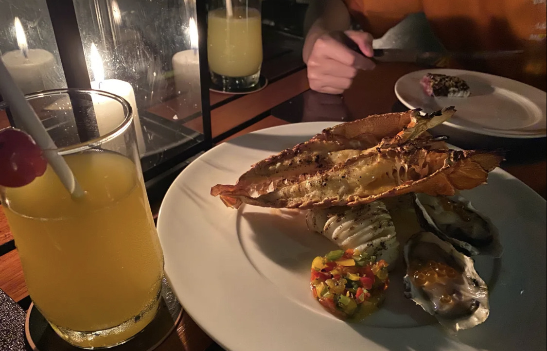 餐厅是一家日落特色的酒店,因为是在悬崖上可以看远方的日落美景。景色怡人的日落餐厅,提供牛排烧烤和海鲜