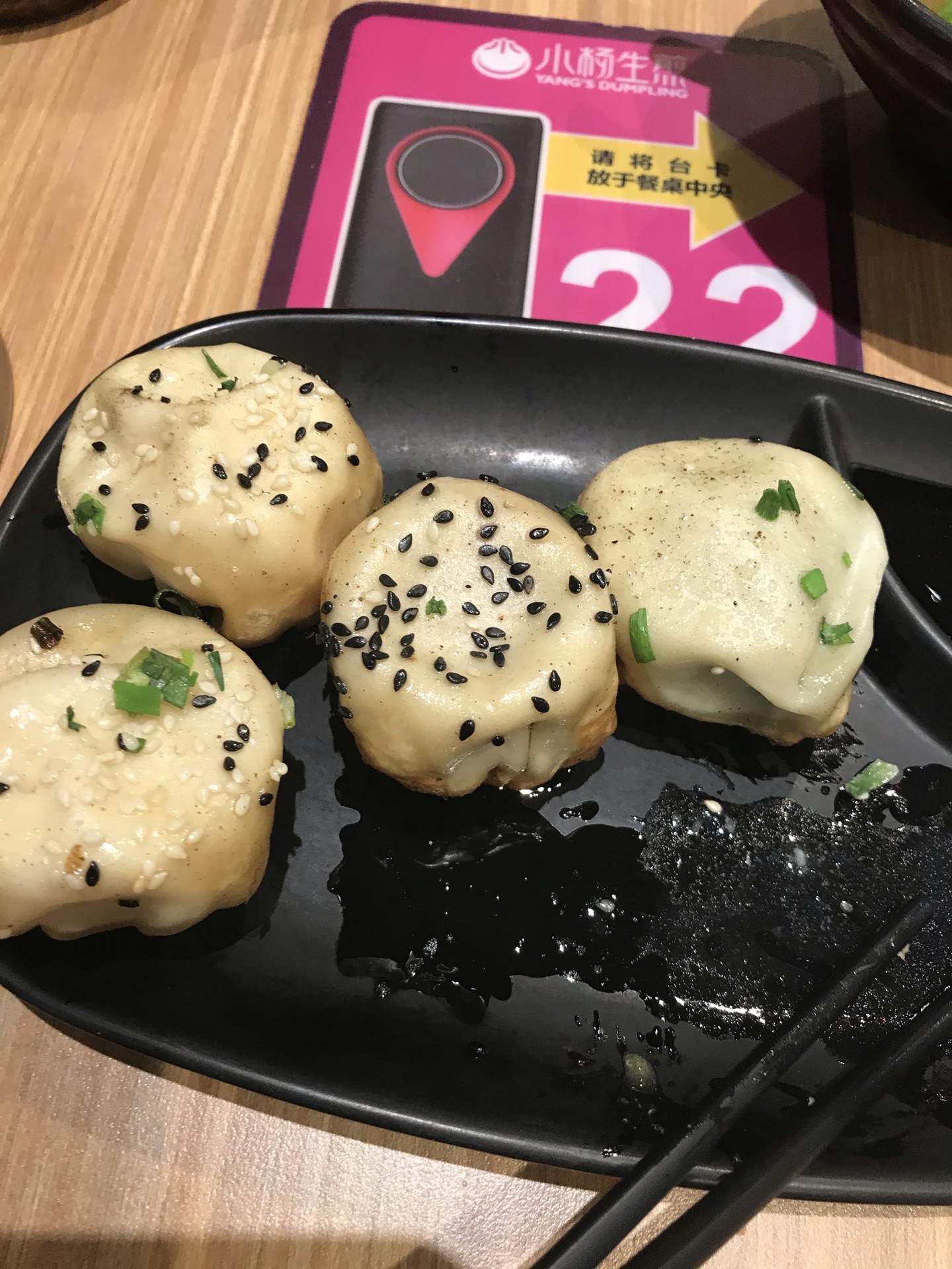 现在这家小杨店面有翻新,后面的架势堂倒闭后也把后面空着的面积合二为一,店里面更加大了,最近一次是上个月初去吃的,买的是三拼的生煎(荠菜、虾仁和蟹黄)外加牛肉汤,这三种口味的生煎都蛮好吃的,就是荠菜的馅料稍微干了点,牛肉汤也是原汁原味,总体不错