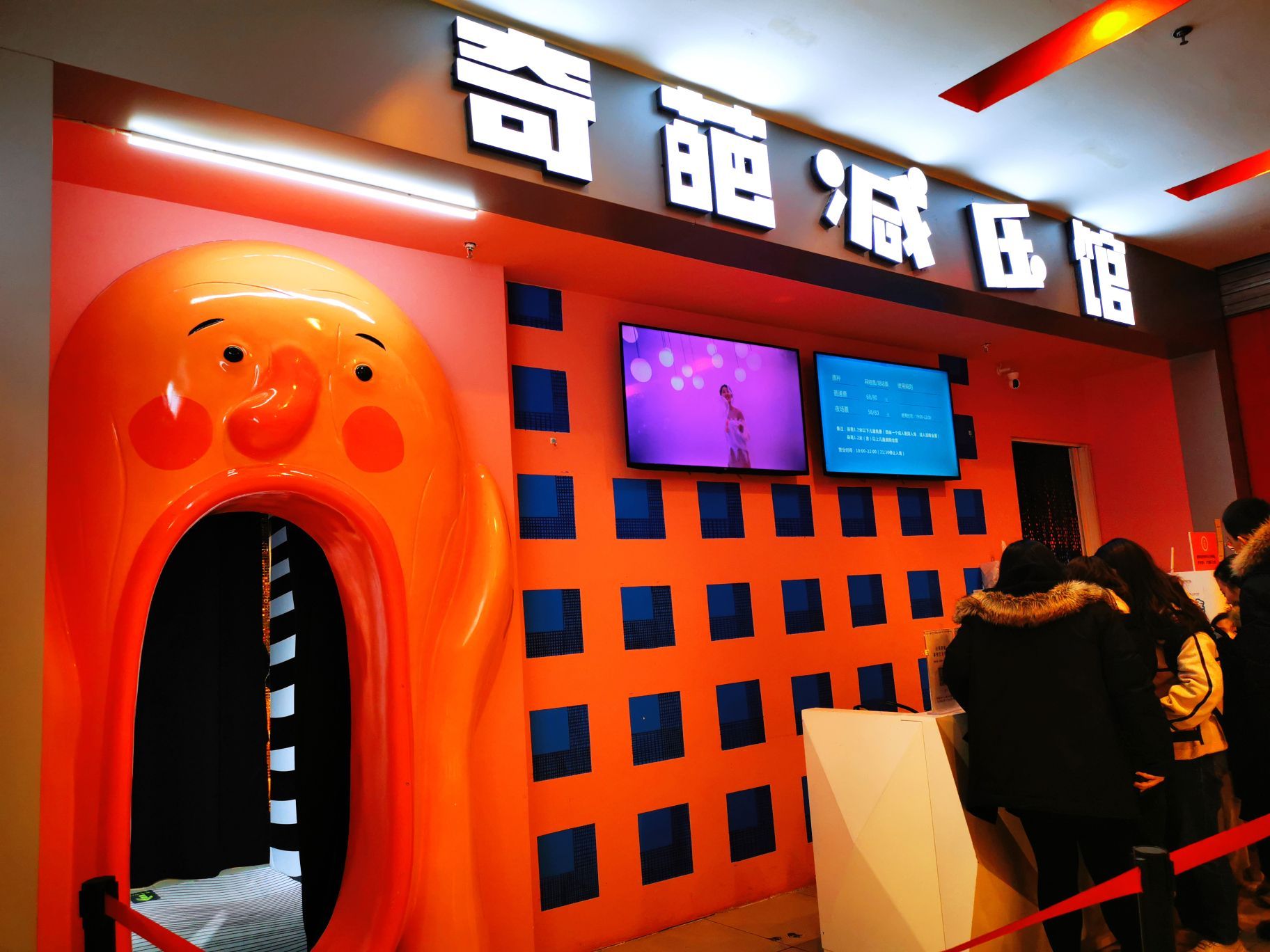 店铺名称:北京奇葩减压馆(旗舰店) ——————————————————————————— 详细地址:国瑞购物中心LG层(物美超市旁) 营业时间:10:00—22:00 人均消费:人均70元左右(1.2米以下免票) 推荐理由:场馆包含趣味互动、宣泄释放、创意装置、奇妙运动四类体验,共有36项奇葩减压项目,性价比较高的一家创意体验馆! ———————————————————————————— 游玩路线:整个场馆设计只有一条通道,所以只要顺着场馆游玩即可! 推荐项目:基本都体验了,感觉都差不太多,没有什么特别与众不同的项目~ ❤️适合拍照的项目//黄金洗手池 、金银山、悬浮屋、天使翅膀、三大涂鸦墙等。 ❤️适合减压的项目//呐喊屋、尖叫屋、超级水床等。 ❤️适合体验类项目//无敌撞撞球、荧光枕头大战等。 ———————————————————————————环境:开在商场里面,整体环境还算干净,人流量大的时候,项目会有限时体验,这点很不错。 服务:整体来说还可以,场馆里面也会安排工作人员。