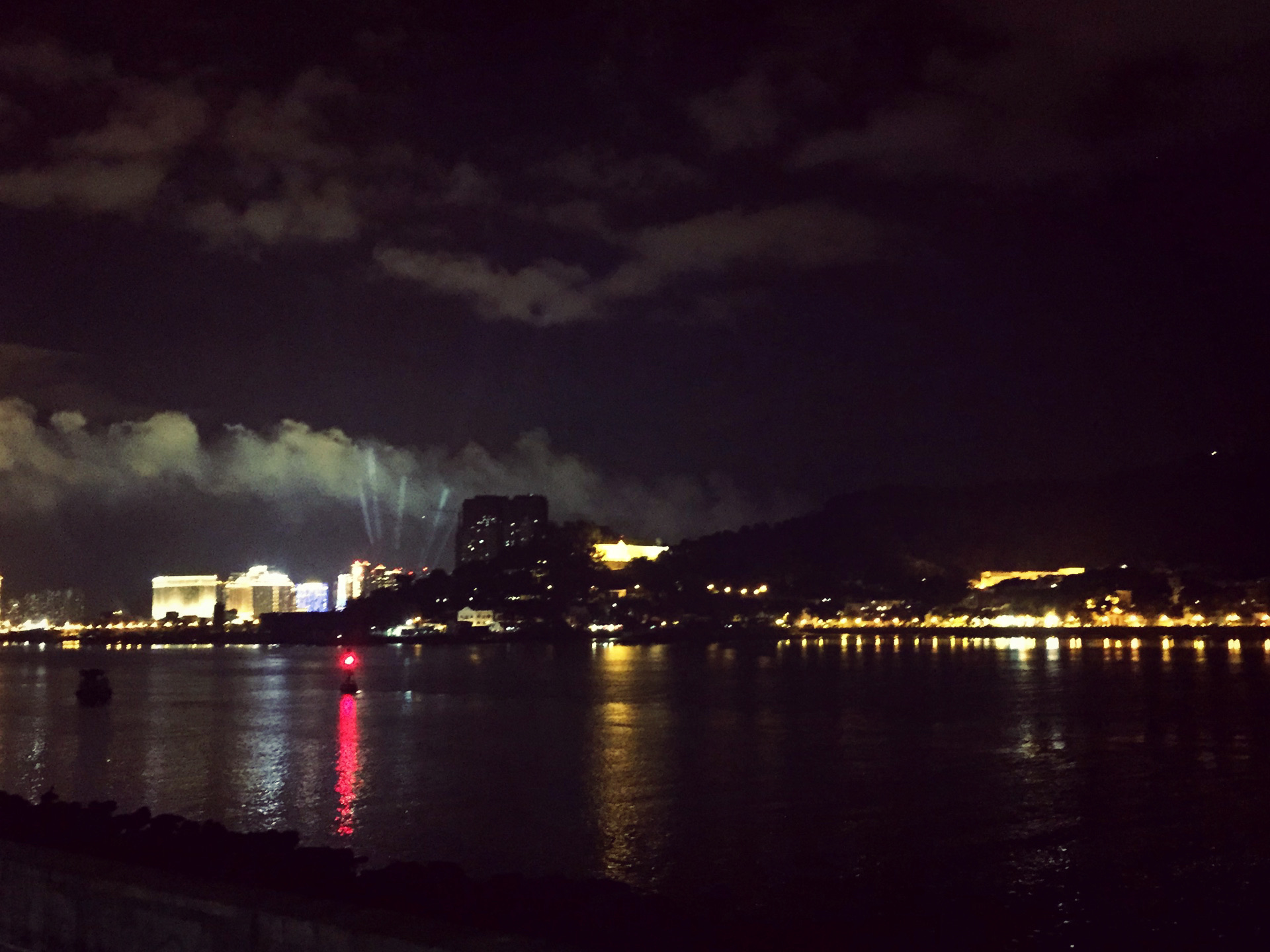 到了横琴才发现,横琴离澳门好近,只是一水之隔而已。横琴是24小时的通关的口岸。“大横琴”的字样看上去颇见几分特色。游船过处,可以看到许多景点,比如澳门大学,这里应该是在横琴岛上的。另外还能看到莲花大桥、威尼斯人酒店、新濠天地等待。在夜晚的时候,看见对岸的夜景还是蛮美丽的。