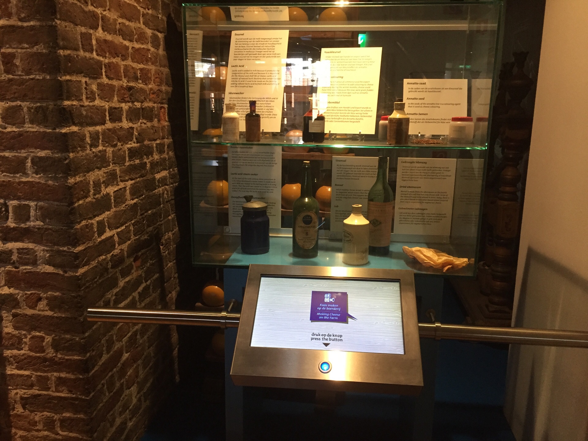 开门有点晚,二月份去的时候要下午一点半才开放给公众,入场是5欧元。进去后会派一件芝士给入场人士品尝。馆内主要是介绍芝士的制作过程及历史,也有一些很珍贵的片段介绍以前的荷兰农夫制作乳酪的过程,真实又带点趣味。