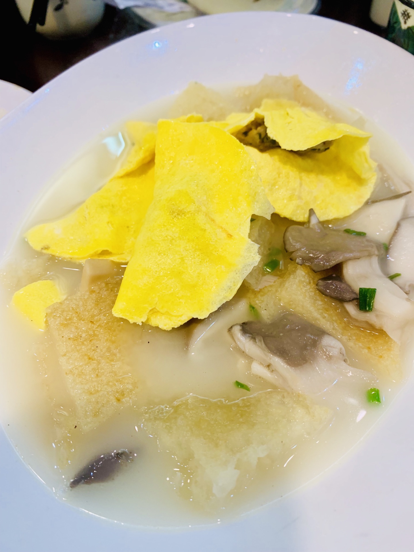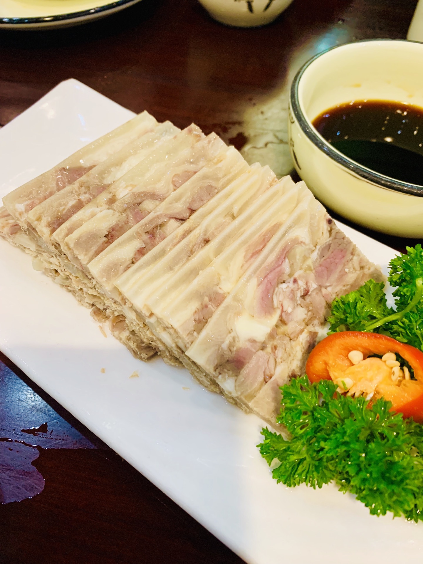 真是年前天气好时来了,否则真不知什么时候才能来七宝逛逛了,逛到也算赚到了。因为老街一路逛一路小吃,最后这家老店稍微再补食些,店人气最旺。点了一些土菜,冬至前肯定选羊肉了,这里的白切羊肉出名,看着图片点的,发觉大份和小份的区别了,原本人不多点了小份,实际东西也不同,大份是整块那种,小份是碎肉拼的,点错了,感觉一般般。草头蚌肉真的好吃蚌肉炒得嫩,稍微一点酱油很调鲜。菌菇蛋饺烩猪皮也是鲜得很,可与照片的量也是不能比的,再次被菜单欺骗,蛋饺做得随意,蛋皮都没包好,关键没几个,图片起码10个的样子,整一个缩水。可这样还是好多人光顾哦,都是来吃名气的吧。
