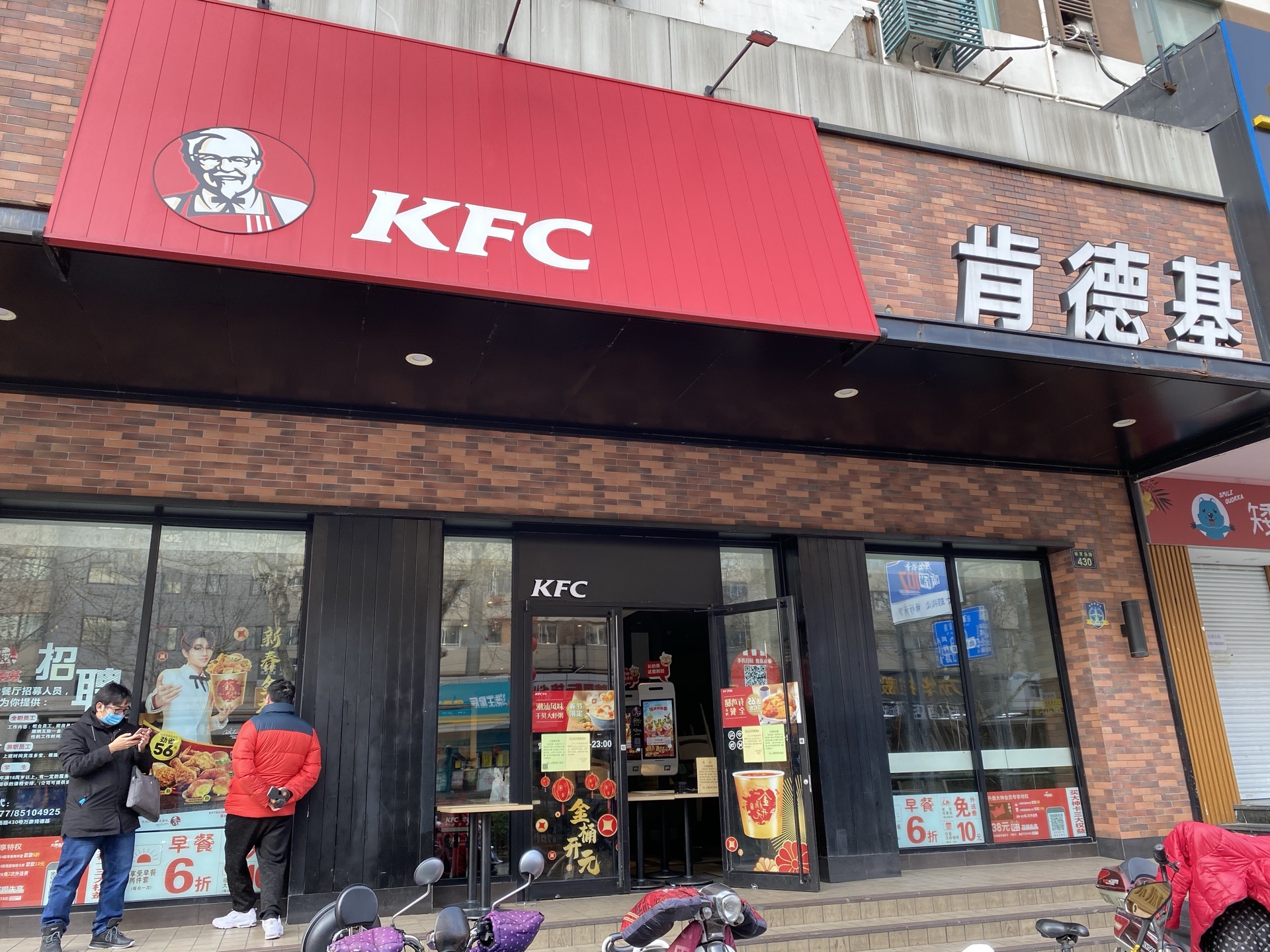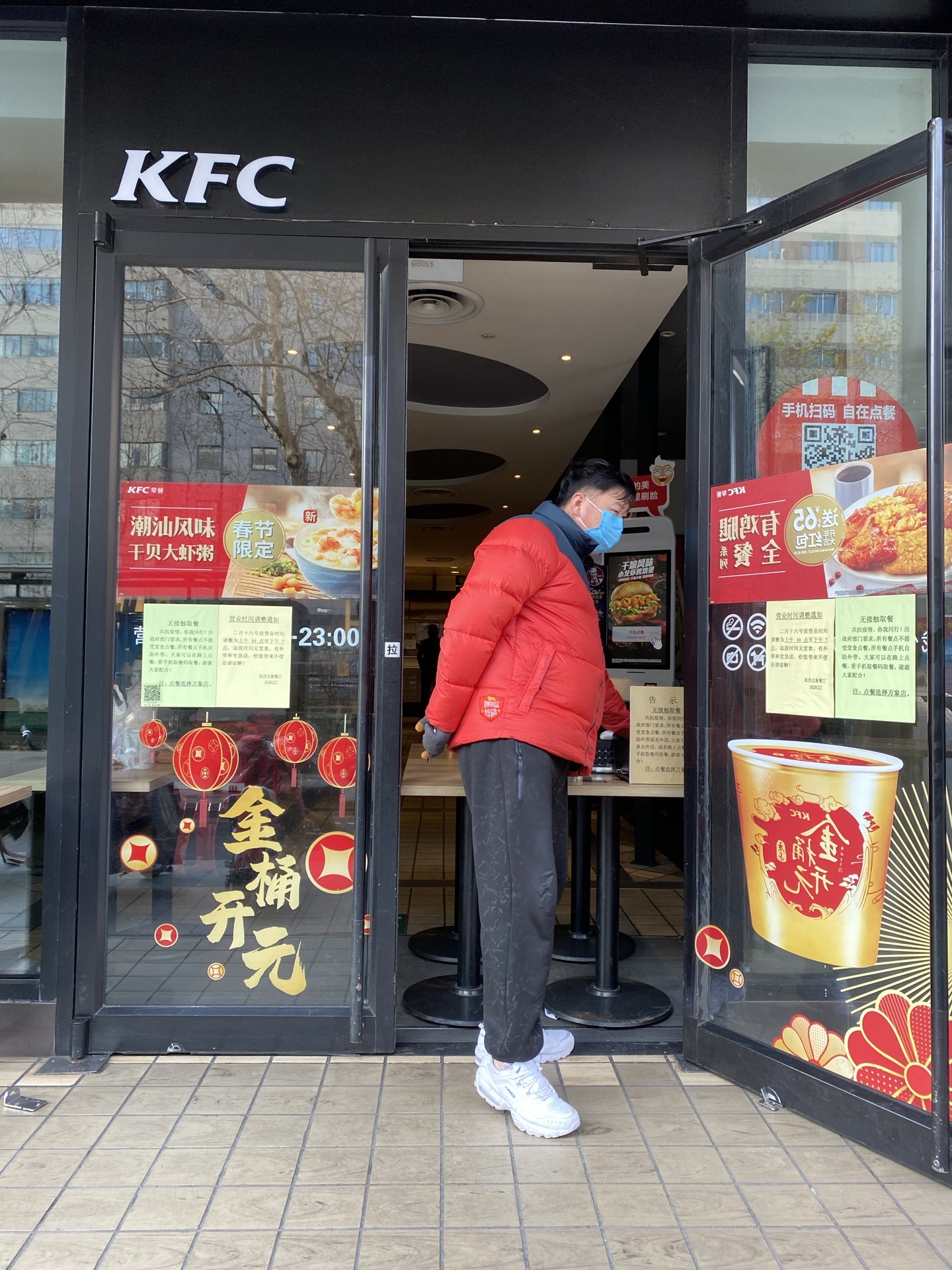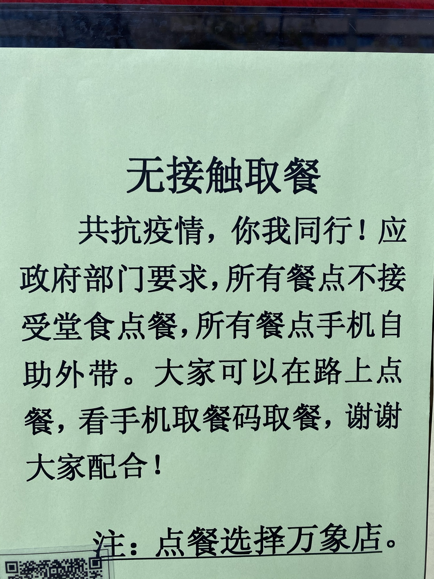 无接触取餐!关键是把门给堵上了!好像第一次看见有这样防顾客的!这种阵势是拒绝❌顾客入内吗?以为这样就可以抵挡住一切吗?不是陕西有个肯德基员工中招了吗!试想一下,如果全家超市,联华超市也如此,那么还有什么人情味呢!