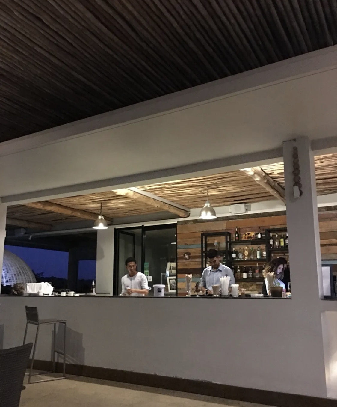网友2020-02-10烤肉串也很好吃,上菜速度也相当不错的。集美食,美景,美酒于一体的意大利餐厅集美食,美景,美酒于一体的意大利餐厅。晚上这里好浪漫,小风吹着好舒服,推荐柚子虾,酸酸辣辣,虾的味道很鲜美的,酸度刚刚好,整个氛围很舒服,音乐很安静,轻轻的放着,在海边,。烤肉串也很好吃,上菜速度也相当不错的。