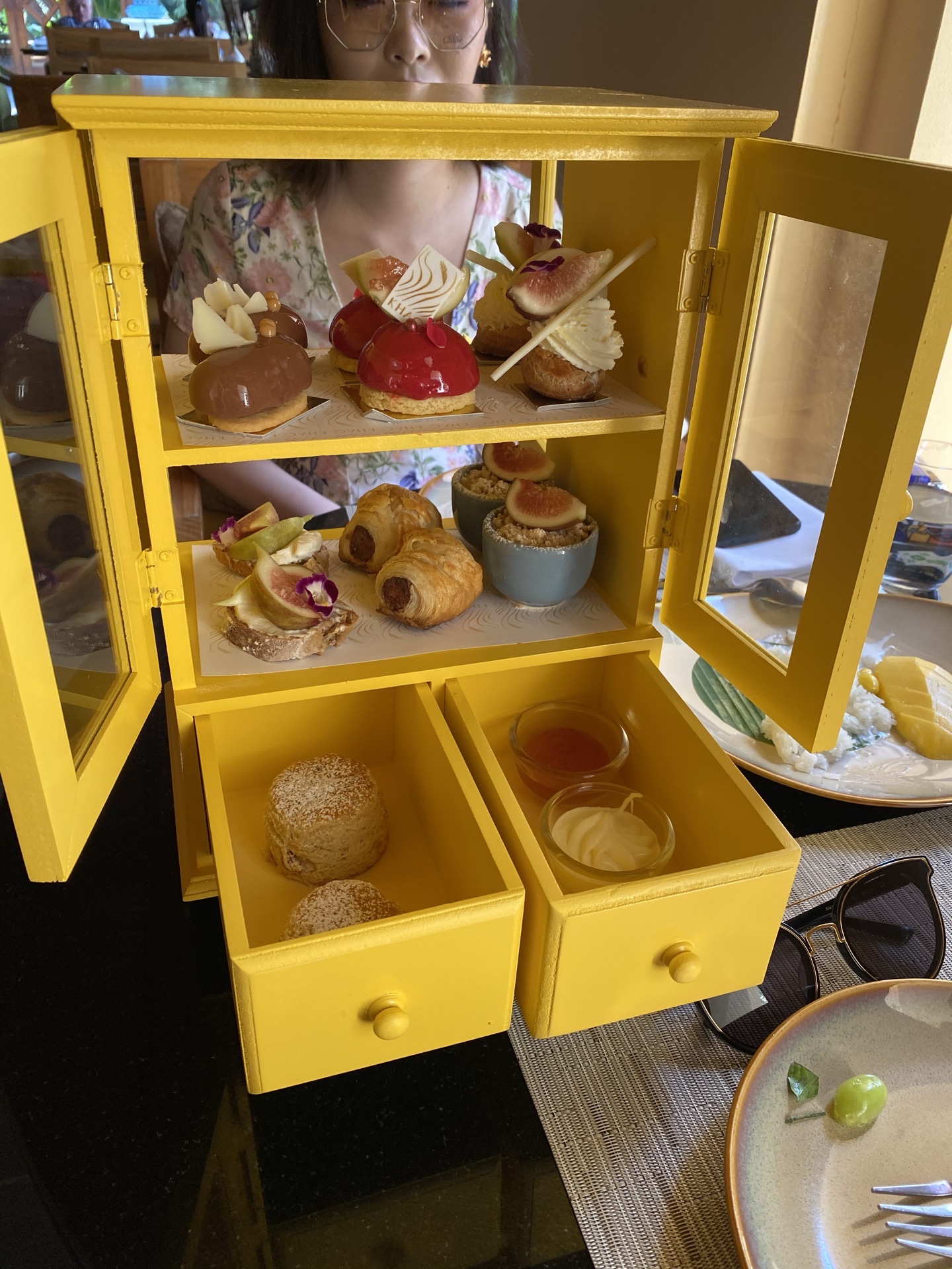 说真的,这里的下午茶套餐一般,性价比不高,简单的两人下午茶点心也要1770泰铢,不包括税费。游泳池旁有个小酒吧,一个椰子也要300多泰铢,是外面的10多倍。主要下午茶套餐多是甜点,太甜腻了。建议还是单点一些其他的点心或米,面主食。吃的不怎么样,但是风景真的好美,不输皇家花园,我觉得来这里拍照打卡,要看鸟语花香,来一个四季酒店就可以了,这里有往返玛雅购物商场的接驳巴士,还是挺方便的。