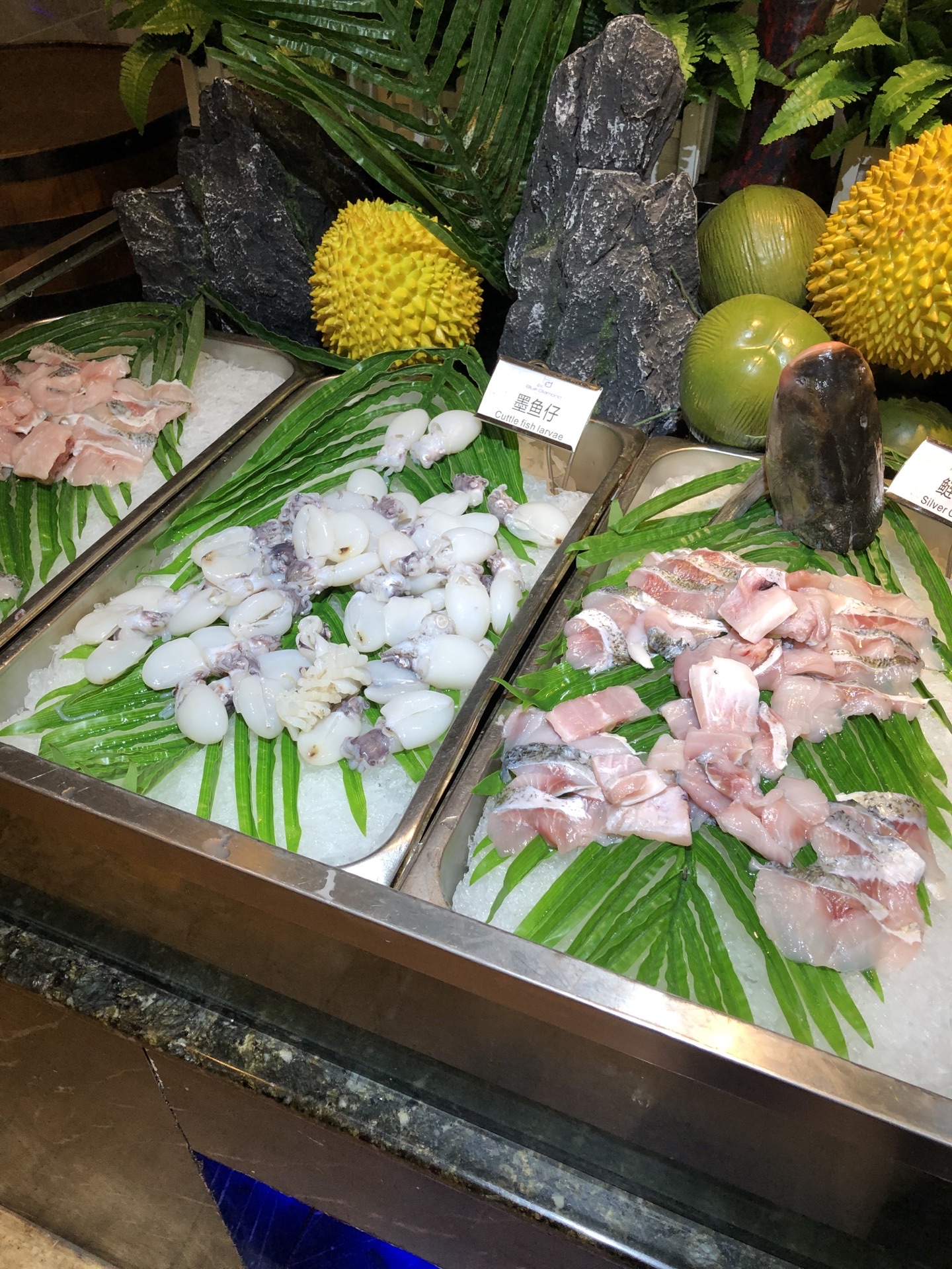 蓝海博龙是家集餐饮和住宿为一体的综合性酒店,地理位置比较偏,相对价位就实惠很多。经常去用餐,自助餐倒是第一次体验。 服务非常到位,一贯的热情相迎,宾至如归。 从餐品来说,不能算特别丰富,但也在中等偏上的水准,基本的海鲜肉类,烤物牛排,蛋糕甜点都有,还提供小火锅,吃的饱饱的。