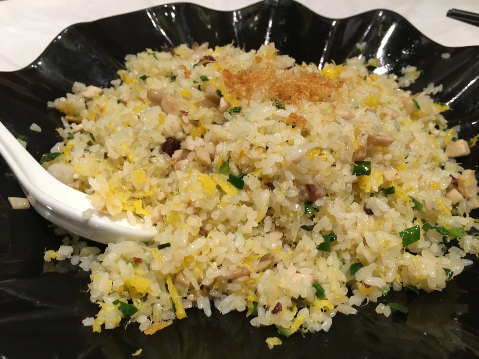 瘦西湖附近的狮子楼,这个系列有一家是黑珍珠餐厅。看着菜品基本上差不多,就选择了就近的这家。招牌菜红烧狮子头、扬州炒饭、文思豆腐羹都点了。红烧狮子头98元很大一个,中间有个蛋黄,好吃但是容易腻。文思豆腐羹豆腐细如丝,考验刀功的一道菜。扬州炒饭粒粒分明,鸡蛋成丝。可以说是招牌菜完全无雷点了。这家店的环境有些欠缺,服务还挺不错的,扫码自助点餐结账。