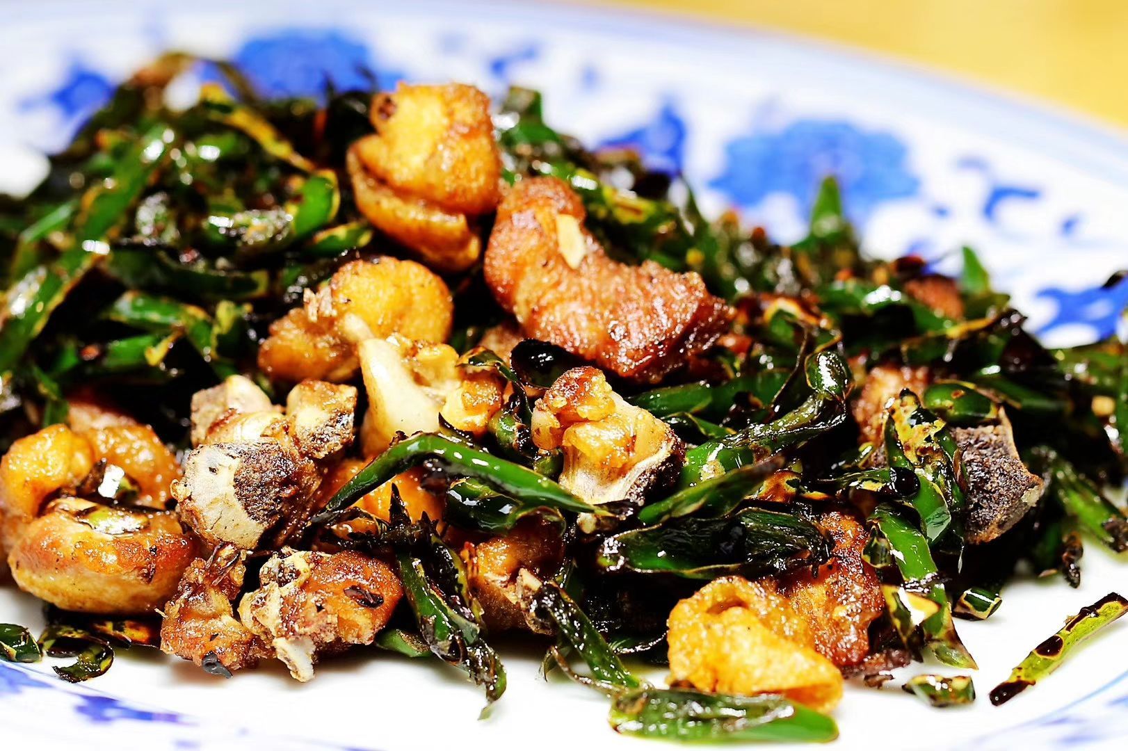...较出彩,凉拌白肉、粉蒸肥肠、萝卜牛腩、酸菜炒汤圆,最喜爱小炒鸡,我估计使用的青小米辣,太刺激了