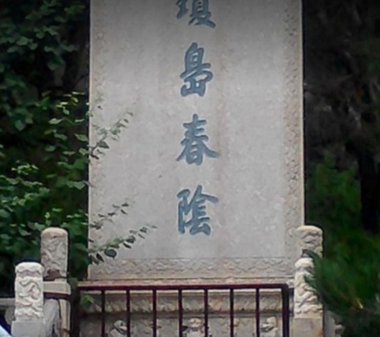 琼岛春阴是北海公园重要景点,该碑立于北海白塔东北侧